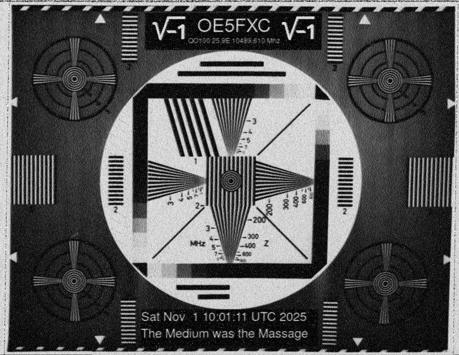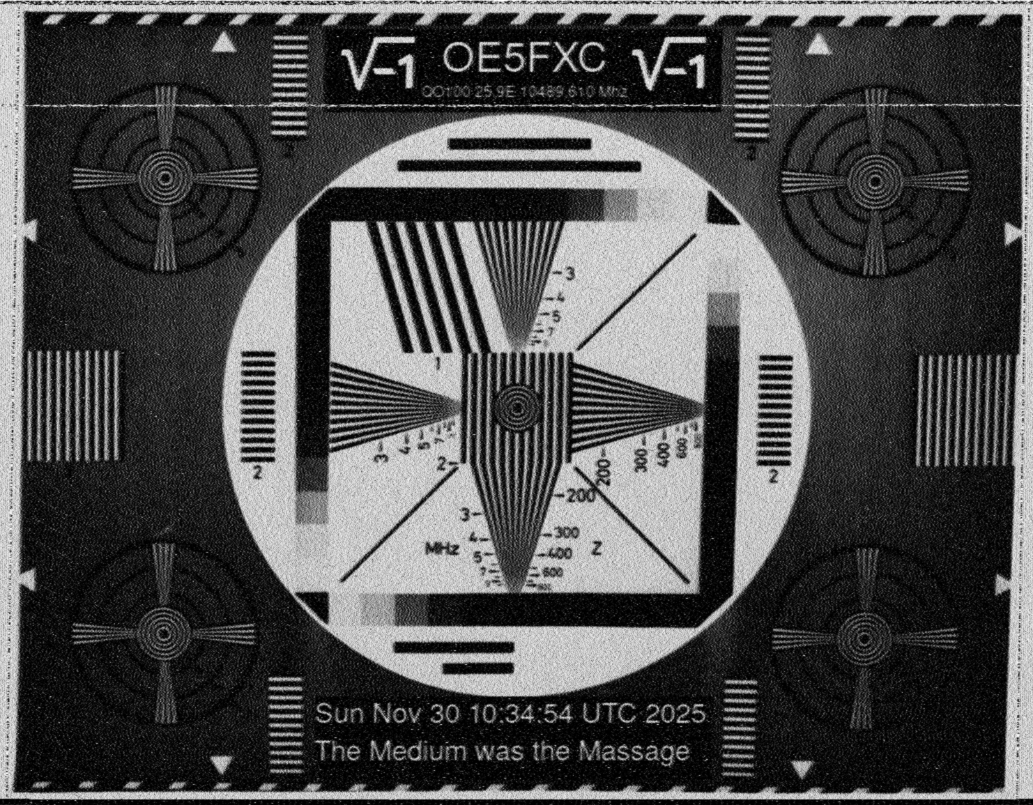 We sending pictures via ham-satellite QO100 - one per day. We use the fax-format which was invented from Alexander Bain(1843) at the time of Ada Lovelace(a woman who shaped the digital thinking 1815–1852) - 20 years before the telephone!.