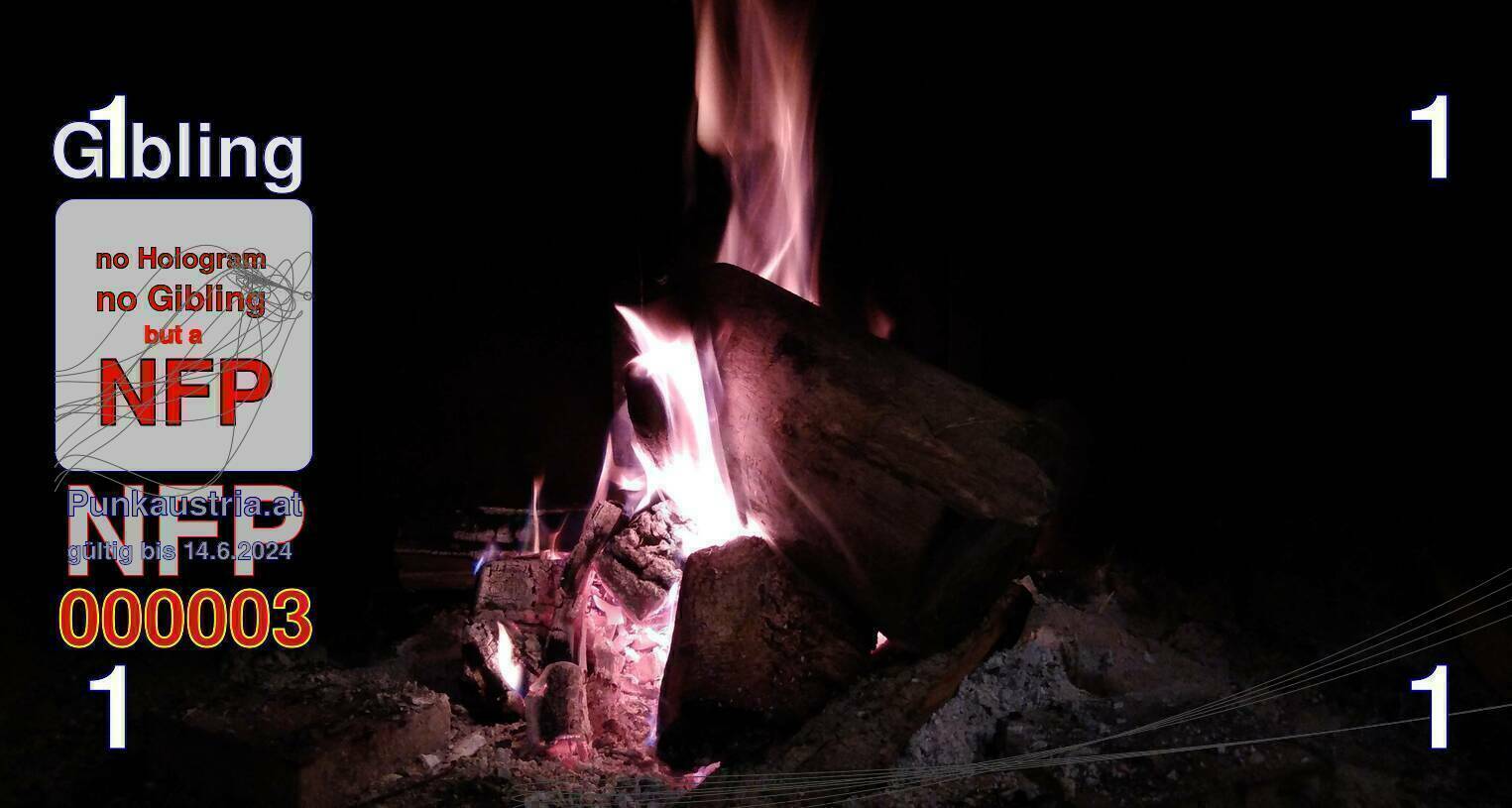 | Caption-Abstract | NFP stays for "Non Fungible Picture". The 11th Edition of our community currency Gibling is built on series of unique pictures. Each image file is unique by serial number and has a own a sha256 checksum. This data is stored in the metatags of the next picture of the series. In the metatags of the first image of the series you can find this text signed in our cryptocurrency Givecoin, created in 2014; NFPs is a fork of the Givecoin blockchain. With the NFPs we extend our ECO system in the context of process art. In this way, the Infolab of the Stadtwerkstatt wants to show another critical position on the logical truths in the new digital information society. The serial number of this image is 000003 and can also be found in the metatag "Original Transmission Reference". The checksum of the previous image is 99106118a6e9d4caf5da00037f949afa07d0686f92d00de38f5524bad32b572b and is also stored in the metatag: "Edit Status". Your bitcoinaddress: 1143JKiBJeG2FP5gSxnb81z2H7TVZaMBY5. Your Givecoinaddress:Is printed on the back of the Gibling. To keep the process open, visit https://gibling.stwst.at and follow the instructions." |