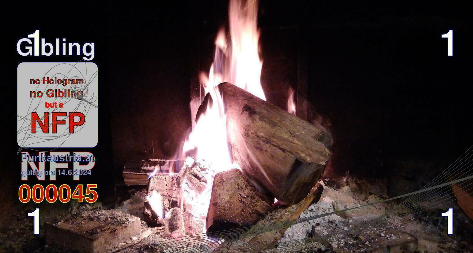 | Caption-Abstract | NFP stays for "Non Fungible Picture". The 11th Edition of our community currency Gibling is built on series of unique pictures. Each image file is unique by serial number and has a own a sha256 checksum. This data is stored in the metatags of the next picture of the series. In the metatags of the first image of the series you can find this text signed in our cryptocurrency Givecoin, created in 2014; NFPs is a fork of the Givecoin blockchain. With the NFPs we extend our ECO system in the context of process art. In this way, the Infolab of the Stadtwerkstatt wants to show another critical position on the logical truths in the new digital information society. The serial number of this image is 000045 and can also be found in the metatag "Original Transmission Reference". The checksum of the previous image is 988d27a9d053bb00e63016064d235a7e9eb16cdb5799cd2f2b36adcbc6389d69 and is also stored in the metatag: "Edit Status". Your bitcoinaddress: 1Y1SaN2vpKakFTnCzULFfDMrXoqZH8khG. Your Givecoinaddress:Is printed on the back of the Gibling. To keep the process open, visit https://gibling.stwst.at and follow the instructions." |