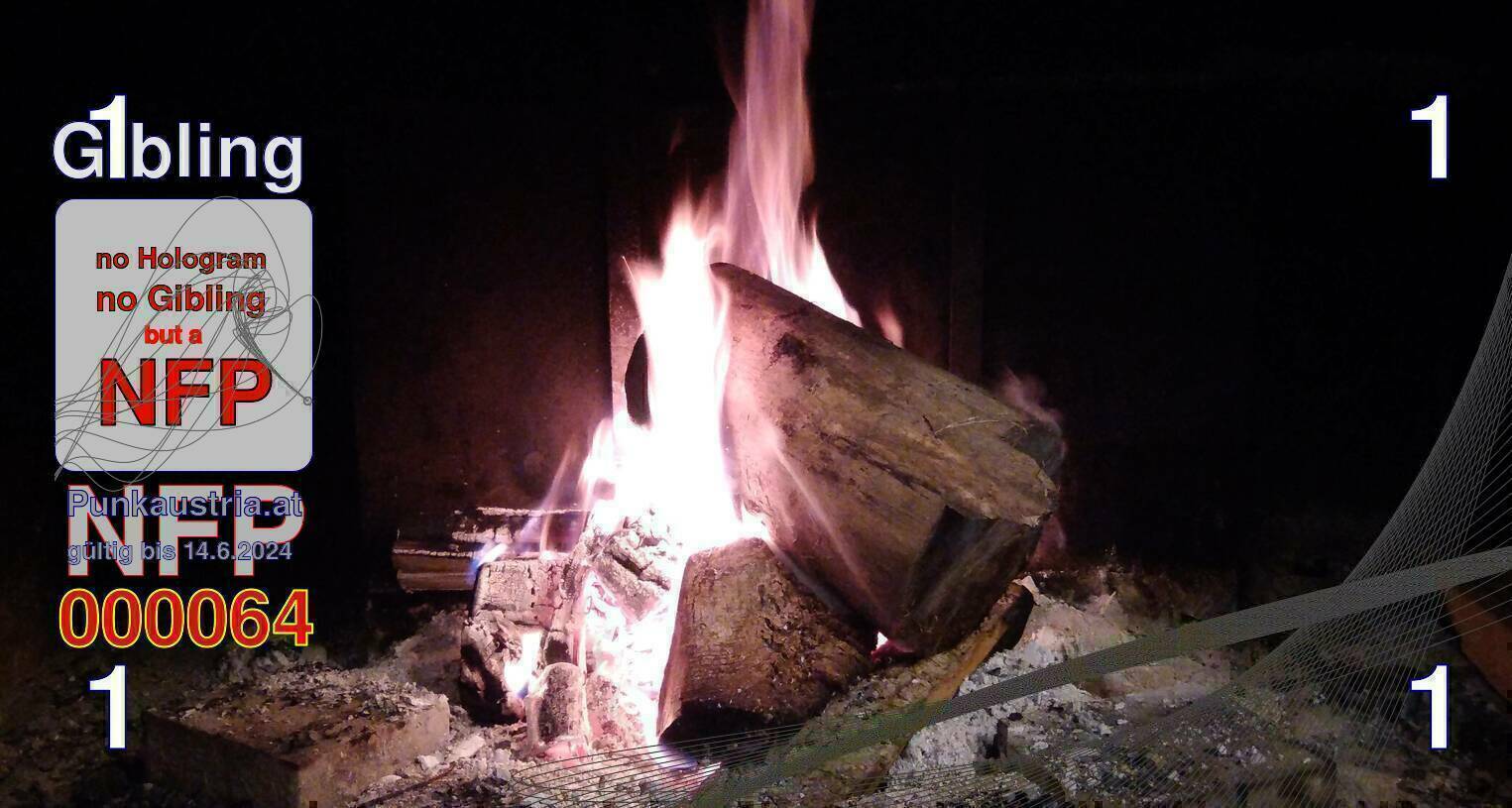 | Caption-Abstract | NFP stays for "Non Fungible Picture". The 11th Edition of our community currency Gibling is built on series of unique pictures. Each image file is unique by serial number and has a own a sha256 checksum. This data is stored in the metatags of the next picture of the series. In the metatags of the first image of the series you can find this text signed in our cryptocurrency Givecoin, created in 2014; NFPs is a fork of the Givecoin blockchain. With the NFPs we extend our ECO system in the context of process art. In this way, the Infolab of the Stadtwerkstatt wants to show another critical position on the logical truths in the new digital information society. The serial number of this image is 000064 and can also be found in the metatag "Original Transmission Reference". The checksum of the previous image is e9e2b8e2b0a40891161f2922620cf9a7a456a7383721f2211e4dfe5099871012 and is also stored in the metatag: "Edit Status". Your bitcoinaddress: 1kFYjJSg6vRfASETUz74EtsjaTPmZiage. Your Givecoinaddress:Is printed on the back of the Gibling. To keep the process open, visit https://gibling.stwst.at and follow the instructions." |