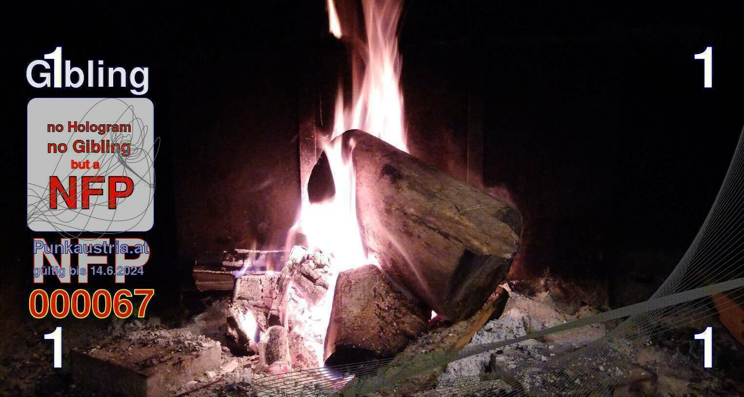 | Caption-Abstract | NFP stays for "Non Fungible Picture". The 11th Edition of our community currency Gibling is built on series of unique pictures. Each image file is unique by serial number and has a own a sha256 checksum. This data is stored in the metatags of the next picture of the series. In the metatags of the first image of the series you can find this text signed in our cryptocurrency Givecoin, created in 2014; NFPs is a fork of the Givecoin blockchain. With the NFPs we extend our ECO system in the context of process art. In this way, the Infolab of the Stadtwerkstatt wants to show another critical position on the logical truths in the new digital information society. The serial number of this image is 000067 and can also be found in the metatag "Original Transmission Reference". The checksum of the previous image is 47830b59cf99f56c8ee664b85148e6d7df5246201604e53b3645ebc7017bbab5 and is also stored in the metatag: "Edit Status". Your bitcoinaddress: 1naJvmKojNe9mTGy1GsiCH9BTphJDnBNS. Your Givecoinaddress:Is printed on the back of the Gibling. To keep the process open, visit https://gibling.stwst.at and follow the instructions." |
