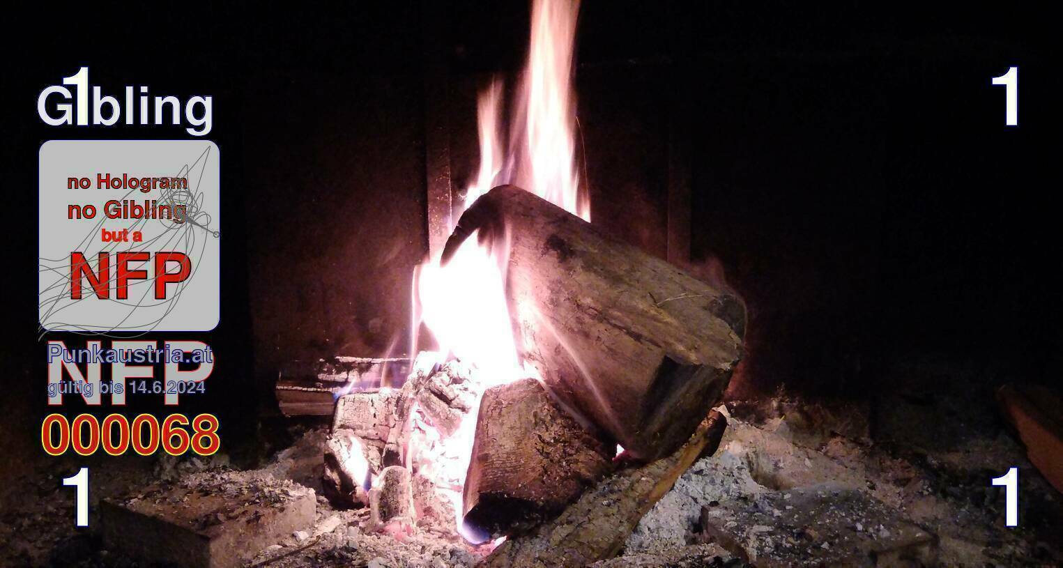 | Caption-Abstract | NFP stays for "Non Fungible Picture". The 11th Edition of our community currency Gibling is built on series of unique pictures. Each image file is unique by serial number and has a own a sha256 checksum. This data is stored in the metatags of the next picture of the series. In the metatags of the first image of the series you can find this text signed in our cryptocurrency Givecoin, created in 2014; NFPs is a fork of the Givecoin blockchain. With the NFPs we extend our ECO system in the context of process art. In this way, the Infolab of the Stadtwerkstatt wants to show another critical position on the logical truths in the new digital information society. The serial number of this image is 000068 and can also be found in the metatag "Original Transmission Reference". The checksum of the previous image is ced9d2601c12d91a6e8197b6230cd83d7fb99c35274eb938e28f2ef19ff1a7fe and is also stored in the metatag: "Edit Status". Your bitcoinaddress: 1ncxYkJ26ztMR1d9698QK3ZPjqibn24Fs. Your Givecoinaddress:Is printed on the back of the Gibling. To keep the process open, visit https://gibling.stwst.at and follow the instructions." |
