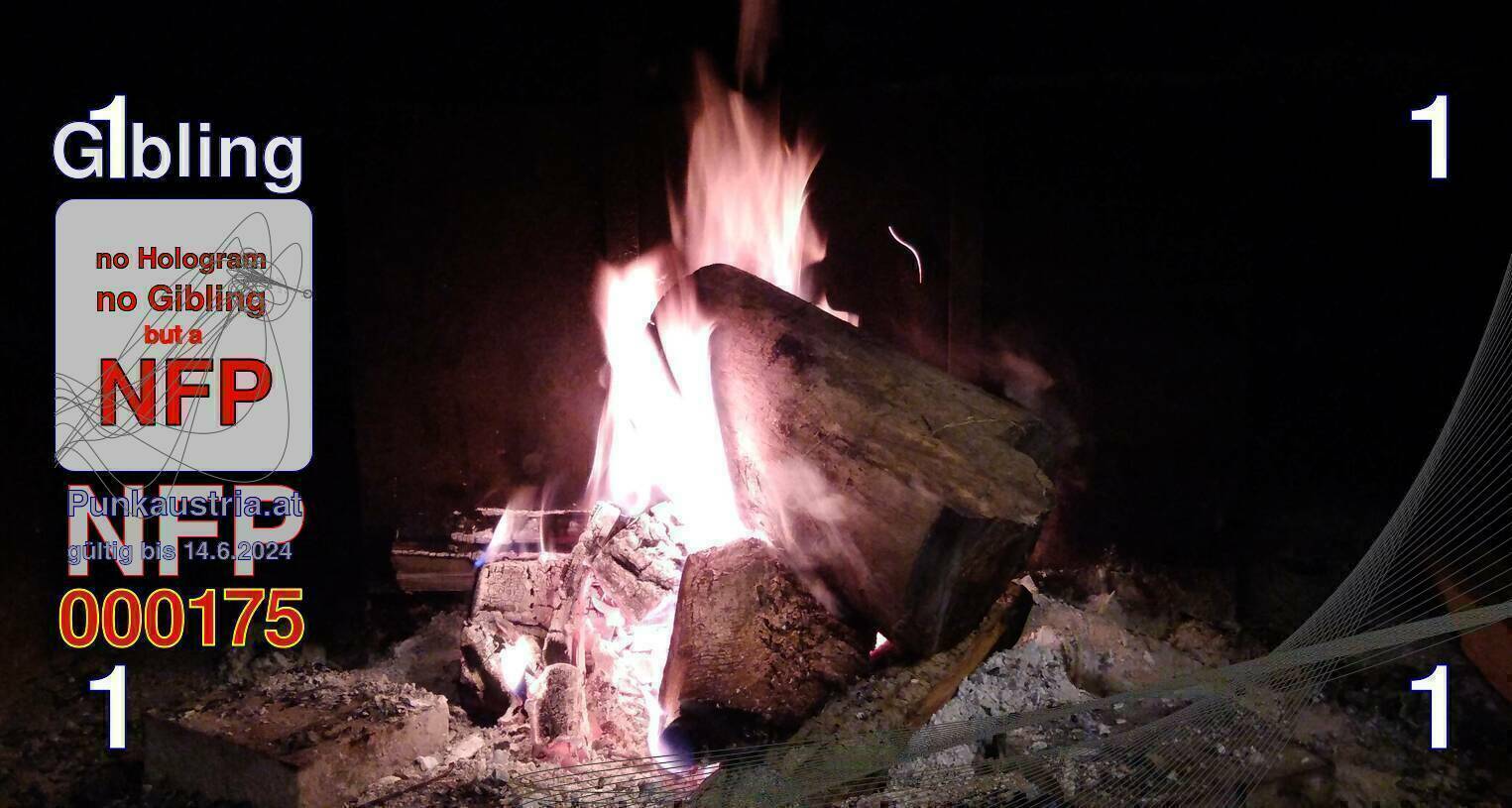 | Caption-Abstract | NFP stays for "Non Fungible Picture". The 11th Edition of our community currency Gibling is built on series of unique pictures. Each image file is unique by serial number and has a own a sha256 checksum. This data is stored in the metatags of the next picture of the series. In the metatags of the first image of the series you can find this text signed in our cryptocurrency Givecoin, created in 2014; NFPs is a fork of the Givecoin blockchain. With the NFPs we extend our ECO system in the context of process art. In this way, the Infolab of the Stadtwerkstatt wants to show another critical position on the logical truths in the new digital information society. The serial number of this image is 000175 and can also be found in the metatag "Original Transmission Reference". The checksum of the previous image is f2cbcecc819531ee9179e2dd4d9aedf441d91e669cdf5c592b1330446cff2175 and is also stored in the metatag: "Edit Status". Your bitcoinaddress: 135rgs9HmxKUg4SyQgtPEcNoyjncgGqC1j. Your Givecoinaddress:Is printed on the back of the Gibling. To keep the process open, visit https://gibling.stwst.at and follow the instructions." |