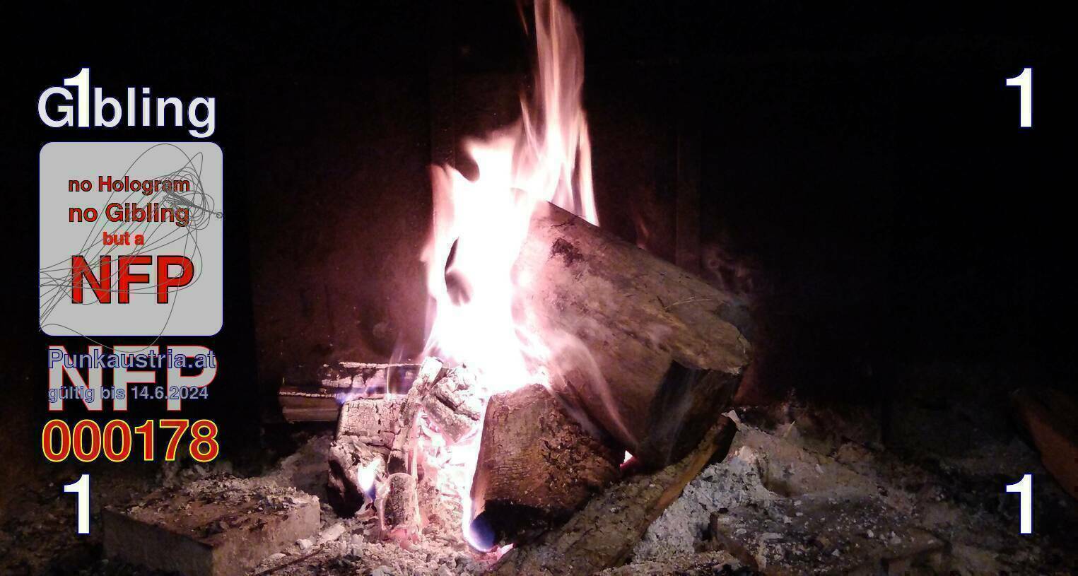 | Caption-Abstract | NFP stays for "Non Fungible Picture". The 11th Edition of our community currency Gibling is built on series of unique pictures. Each image file is unique by serial number and has a own a sha256 checksum. This data is stored in the metatags of the next picture of the series. In the metatags of the first image of the series you can find this text signed in our cryptocurrency Givecoin, created in 2014; NFPs is a fork of the Givecoin blockchain. With the NFPs we extend our ECO system in the context of process art. In this way, the Infolab of the Stadtwerkstatt wants to show another critical position on the logical truths in the new digital information society. The serial number of this image is 000178 and can also be found in the metatag "Original Transmission Reference". The checksum of the previous image is b1196d1da55ac5ead21d4c83304325493b942606f77af22c83ac1122434e3b68 and is also stored in the metatag: "Edit Status". Your bitcoinaddress: 137W6TesxYtzLH2qb73kNxQJpnAtC3ezTk. Your Givecoinaddress:Is printed on the back of the Gibling. To keep the process open, visit https://gibling.stwst.at and follow the instructions." |