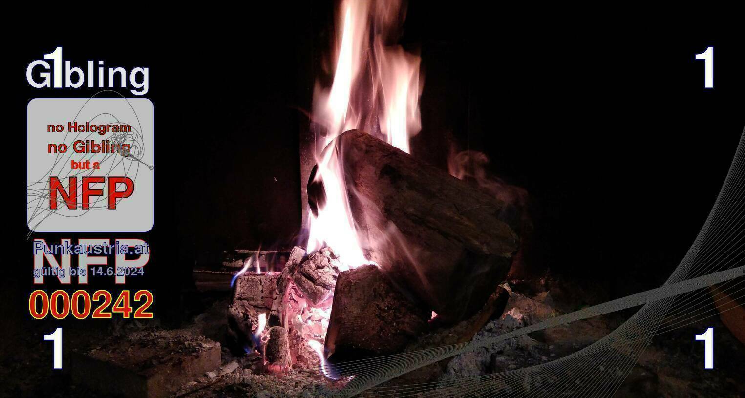 | Caption-Abstract | NFP stays for "Non Fungible Picture". The 11th Edition of our community currency Gibling is built on series of unique pictures. Each image file is unique by serial number and has a own a sha256 checksum. This data is stored in the metatags of the next picture of the series. In the metatags of the first image of the series you can find this text signed in our cryptocurrency Givecoin, created in 2014; NFPs is a fork of the Givecoin blockchain. With the NFPs we extend our ECO system in the context of process art. In this way, the Infolab of the Stadtwerkstatt wants to show another critical position on the logical truths in the new digital information society. The serial number of this image is 000242 and can also be found in the metatag "Original Transmission Reference". The checksum of the previous image is 6f2bb873ec9bc9139c093010e95401985dd9ab8708f361b3114f71bdd7261679 and is also stored in the metatag: "Edit Status". Your bitcoinaddress: 13rX6uE56CgGzHWdLbUvqiQ4XmzsCntzYc. Your Givecoinaddress:Is printed on the back of the Gibling. To keep the process open, visit https://gibling.stwst.at and follow the instructions." |