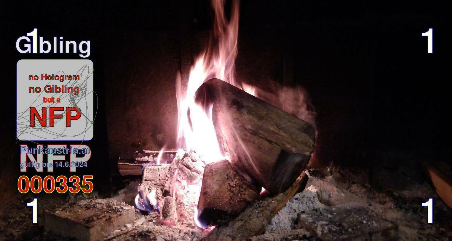| Caption-Abstract | NFP stays for "Non Fungible Picture". The 11th Edition of our community currency Gibling is built on series of unique pictures. Each image file is unique by serial number and has a own a sha256 checksum. This data is stored in the metatags of the next picture of the series. In the metatags of the first image of the series you can find this text signed in our cryptocurrency Givecoin, created in 2014; NFPs is a fork of the Givecoin blockchain. With the NFPs we extend our ECO system in the context of process art. In this way, the Infolab of the Stadtwerkstatt wants to show another critical position on the logical truths in the new digital information society. The serial number of this image is 000335 and can also be found in the metatag "Original Transmission Reference". The checksum of the previous image is 568eaf24fd353051ef8c47ba1b2f4b5fcf92683fe0650cfb68deccaddd6022a3 and is also stored in the metatag: "Edit Status". Your bitcoinaddress: 14puA9FXdRtBGvVq8tf4yW3ir2s18j92j5. Your Givecoinaddress:Is printed on the back of the Gibling. To keep the process open, visit https://gibling.stwst.at and follow the instructions." |