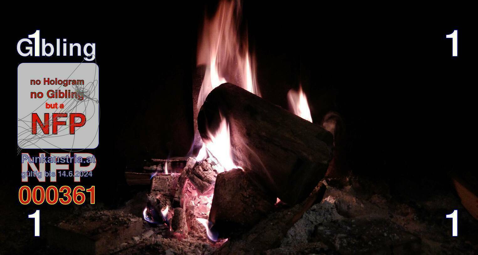 | Caption-Abstract | NFP stays for "Non Fungible Picture". The 11th Edition of our community currency Gibling is built on series of unique pictures. Each image file is unique by serial number and has a own a sha256 checksum. This data is stored in the metatags of the next picture of the series. In the metatags of the first image of the series you can find this text signed in our cryptocurrency Givecoin, created in 2014; NFPs is a fork of the Givecoin blockchain. With the NFPs we extend our ECO system in the context of process art. In this way, the Infolab of the Stadtwerkstatt wants to show another critical position on the logical truths in the new digital information society. The serial number of this image is 000361 and can also be found in the metatag "Original Transmission Reference". The checksum of the previous image is 1af23005884cff3b749f99099b8e6c0fba866150a43da3e5e6a11e722e447105 and is also stored in the metatag: "Edit Status". Your bitcoinaddress: 156eM28RTzq2u5BvKeiKjnsmw2VspVYMq7. Your Givecoinaddress:Is printed on the back of the Gibling. To keep the process open, visit https://gibling.stwst.at and follow the instructions." |