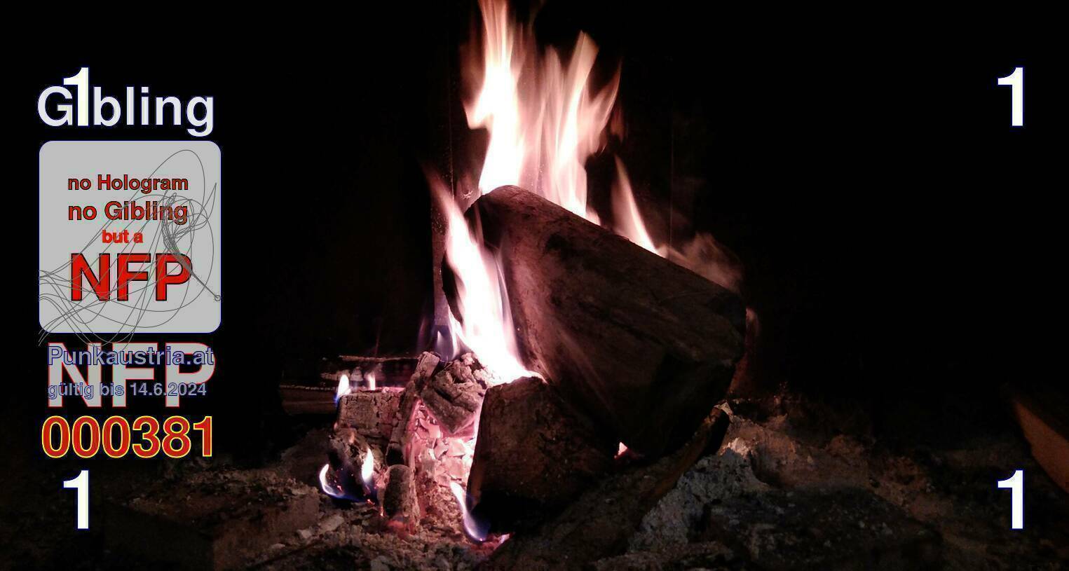 | Caption-Abstract | NFP stays for "Non Fungible Picture". The 11th Edition of our community currency Gibling is built on series of unique pictures. Each image file is unique by serial number and has a own a sha256 checksum. This data is stored in the metatags of the next picture of the series. In the metatags of the first image of the series you can find this text signed in our cryptocurrency Givecoin, created in 2014; NFPs is a fork of the Givecoin blockchain. With the NFPs we extend our ECO system in the context of process art. In this way, the Infolab of the Stadtwerkstatt wants to show another critical position on the logical truths in the new digital information society. The serial number of this image is 000381 and can also be found in the metatag "Original Transmission Reference". The checksum of the previous image is edd16555125f116a449a2829bdc9052bb88b309a24b59beefae9a5944b80070d and is also stored in the metatag: "Edit Status". Your bitcoinaddress: 15F8G26Spd7d4YJ81gFw1UyxL5niNtBBAG. Your Givecoinaddress:Is printed on the back of the Gibling. To keep the process open, visit https://gibling.stwst.at and follow the instructions." |