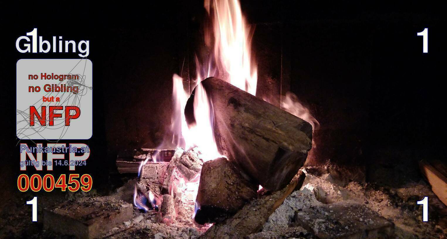 | Caption-Abstract | NFP stays for "Non Fungible Picture". The 11th Edition of our community currency Gibling is built on series of unique pictures. Each image file is unique by serial number and has a own a sha256 checksum. This data is stored in the metatags of the next picture of the series. In the metatags of the first image of the series you can find this text signed in our cryptocurrency Givecoin, created in 2014; NFPs is a fork of the Givecoin blockchain. With the NFPs we extend our ECO system in the context of process art. In this way, the Infolab of the Stadtwerkstatt wants to show another critical position on the logical truths in the new digital information society. The serial number of this image is 000459 and can also be found in the metatag "Original Transmission Reference". The checksum of the previous image is 88aa510b67dd612750c947a401aaefcbad229f0cd8863cde85e6807b50226932 and is also stored in the metatag: "Edit Status". Your bitcoinaddress: 16EMzQXx3ab3VjZAJvf68E2T253Z5ZwtMS. Your Givecoinaddress:Is printed on the back of the Gibling. To keep the process open, visit https://gibling.stwst.at and follow the instructions." |
