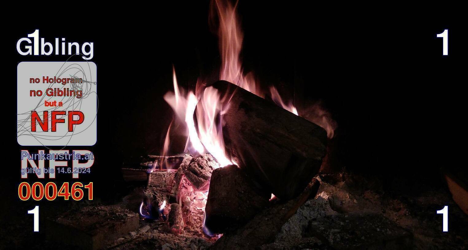 | Caption-Abstract | NFP stays for "Non Fungible Picture". The 11th Edition of our community currency Gibling is built on series of unique pictures. Each image file is unique by serial number and has a own a sha256 checksum. This data is stored in the metatags of the next picture of the series. In the metatags of the first image of the series you can find this text signed in our cryptocurrency Givecoin, created in 2014; NFPs is a fork of the Givecoin blockchain. With the NFPs we extend our ECO system in the context of process art. In this way, the Infolab of the Stadtwerkstatt wants to show another critical position on the logical truths in the new digital information society. The serial number of this image is 000461 and can also be found in the metatag "Original Transmission Reference". The checksum of the previous image is cb703f6e19cd417a02799194ebc8d7359ca54cf37c95a88a436500c093b0e8cd and is also stored in the metatag: "Edit Status". Your bitcoinaddress: 16F5qyC2S2nEJo9aSD5tVpHHqzx3yx4k5X. Your Givecoinaddress:Is printed on the back of the Gibling. To keep the process open, visit https://gibling.stwst.at and follow the instructions." |
