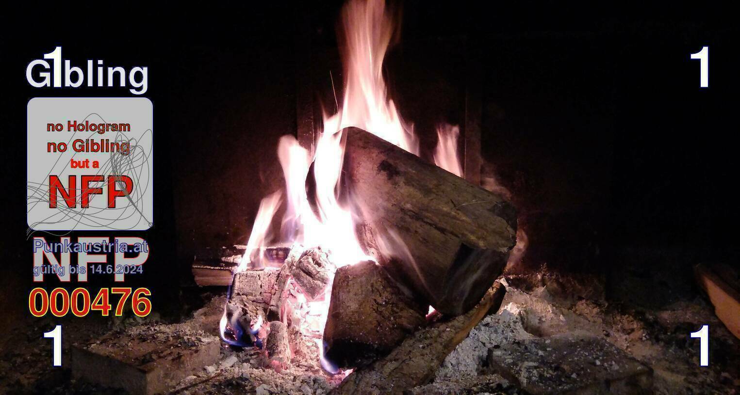 | Caption-Abstract | NFP stays for "Non Fungible Picture". The 11th Edition of our community currency Gibling is built on series of unique pictures. Each image file is unique by serial number and has a own a sha256 checksum. This data is stored in the metatags of the next picture of the series. In the metatags of the first image of the series you can find this text signed in our cryptocurrency Givecoin, created in 2014; NFPs is a fork of the Givecoin blockchain. With the NFPs we extend our ECO system in the context of process art. In this way, the Infolab of the Stadtwerkstatt wants to show another critical position on the logical truths in the new digital information society. The serial number of this image is 000476 and can also be found in the metatag "Original Transmission Reference". The checksum of the previous image is 1b03365fd22b614a961027817cded8389a5b823a710ae3b35073f40b858edbba and is also stored in the metatag: "Edit Status". Your bitcoinaddress: 16TfG9HW43kdiKy5neojEmfhz8VjB9pbMe. Your Givecoinaddress:Is printed on the back of the Gibling. To keep the process open, visit https://gibling.stwst.at and follow the instructions." |