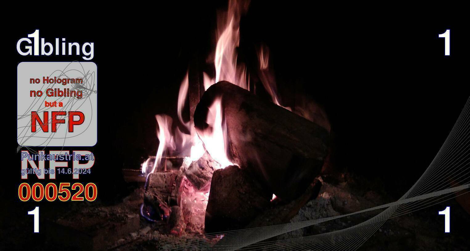| Caption-Abstract | NFP stays for "Non Fungible Picture". The 11th Edition of our community currency Gibling is built on series of unique pictures. Each image file is unique by serial number and has a own a sha256 checksum. This data is stored in the metatags of the next picture of the series. In the metatags of the first image of the series you can find this text signed in our cryptocurrency Givecoin, created in 2014; NFPs is a fork of the Givecoin blockchain. With the NFPs we extend our ECO system in the context of process art. In this way, the Infolab of the Stadtwerkstatt wants to show another critical position on the logical truths in the new digital information society. The serial number of this image is 000520 and can also be found in the metatag "Original Transmission Reference". The checksum of the previous image is 9f61d7b89f6a320cd22971f69ea6906e65337624be9b258ea158a98cabfb8cfd and is also stored in the metatag: "Edit Status". Your bitcoinaddress: 16vAjmQQ9NkN4NxVAUaQgifLiT37E2qf4s. Your Givecoinaddress:Is printed on the back of the Gibling. To keep the process open, visit https://gibling.stwst.at and follow the instructions." |