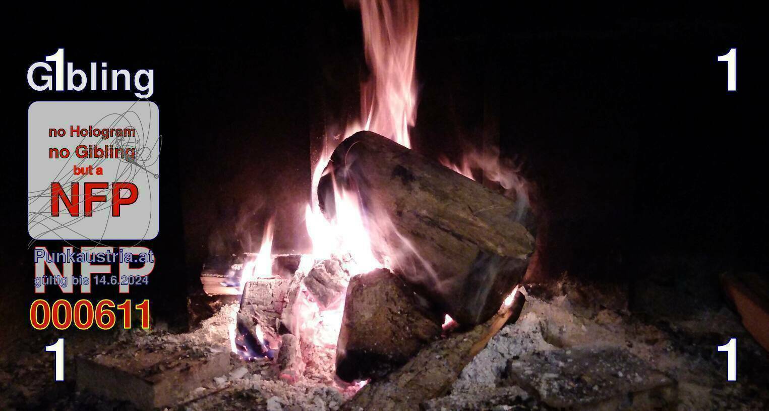 | Caption-Abstract | NFP stays for "Non Fungible Picture". The 11th Edition of our community currency Gibling is built on series of unique pictures. Each image file is unique by serial number and has a own a sha256 checksum. This data is stored in the metatags of the next picture of the series. In the metatags of the first image of the series you can find this text signed in our cryptocurrency Givecoin, created in 2014; NFPs is a fork of the Givecoin blockchain. With the NFPs we extend our ECO system in the context of process art. In this way, the Infolab of the Stadtwerkstatt wants to show another critical position on the logical truths in the new digital information society. The serial number of this image is 000611 and can also be found in the metatag "Original Transmission Reference". The checksum of the previous image is 1aaecf1eeb97c583175d66ab698f50708dfabaa50a20fdcbd7d5992ecda23dce and is also stored in the metatag: "Edit Status". Your bitcoinaddress: 17tjCMxvHeqZJ7XAT8b7sU6UCdy6CFXFKR. Your Givecoinaddress:Is printed on the back of the Gibling. To keep the process open, visit https://gibling.stwst.at and follow the instructions." |