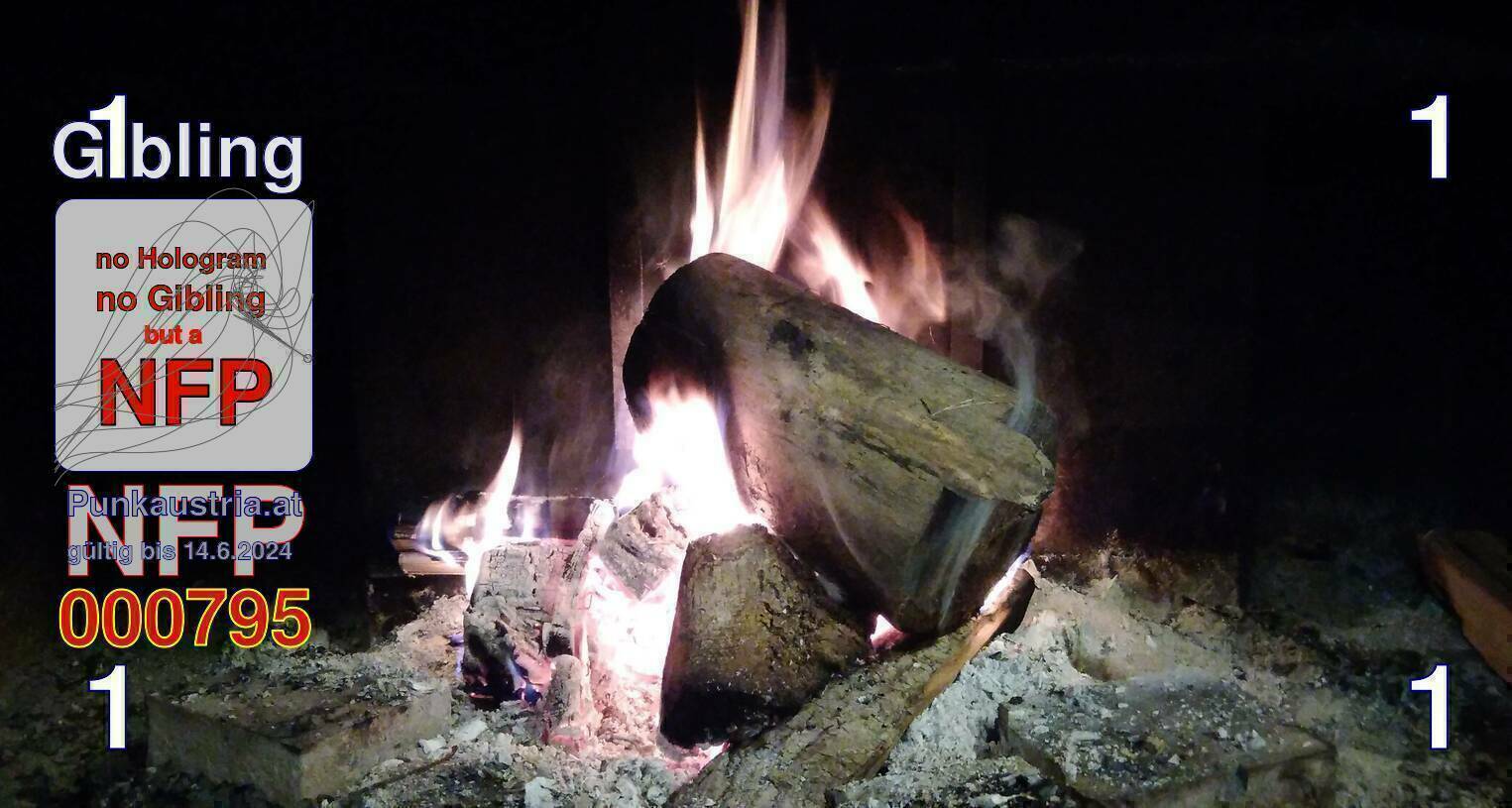 | Caption-Abstract | NFP stays for "Non Fungible Picture". The 11th Edition of our community currency Gibling is built on series of unique pictures. Each image file is unique by serial number and has a own a sha256 checksum. This data is stored in the metatags of the next picture of the series. In the metatags of the first image of the series you can find this text signed in our cryptocurrency Givecoin, created in 2014; NFPs is a fork of the Givecoin blockchain. With the NFPs we extend our ECO system in the context of process art. In this way, the Infolab of the Stadtwerkstatt wants to show another critical position on the logical truths in the new digital information society. The serial number of this image is 000795 and can also be found in the metatag "Original Transmission Reference". The checksum of the previous image is 9dbfe872bee1c7e0a3f6e9788ce53ff137f9a12b96ca8ffac0a3d2861f0f17fc and is also stored in the metatag: "Edit Status". Your bitcoinaddress: 19r1otaqz6QydYfpFG7Z5KAy9LFoQiMFWB. Your Givecoinaddress:Is printed on the back of the Gibling. To keep the process open, visit https://gibling.stwst.at and follow the instructions." |