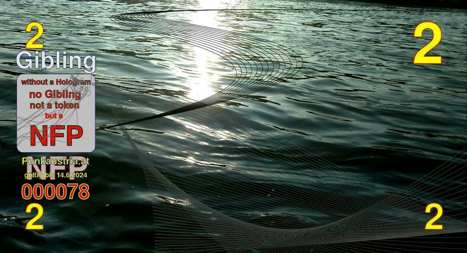 | Caption-Abstract | NFP stays for "Non Fungible Picture". The 11th Edition of our community currency Gibling is built on series of unique pictures. Each image file is unique by serial number and has a own a sha256 checksum. This data is stored in the metatags of the next picture of the series. In the metatags of the first image of the series you can find this text signed in our cryptocurrency Givecoin, created in 2014; NFPs is a fork of the Givecoin blockchain. With the NFPs we extend our ECO system in the context of process art. In this way, the Infolab of the Stadtwerkstatt wants to show another critical position on the logical truths in the new digital information society. The serial number of this image is 000078 and can also be found in the metatag "Original Transmission Reference". The checksum of the previous image is 6bf2f82c988416ba509c566bf7c85bd2a2e2e7514ddb752f4397dbea7ff3ecf8 and is also stored in the metatag: "Edit Status". Your bitcoinaddress: 126xF6rM8ocq1nB781kqdyhfx7GFhyiVXu. Your Givecoinaddress:Is printed on the back of the Gibling. To keep the process open, visit https://gibling.stwst.at and follow the instructions." |