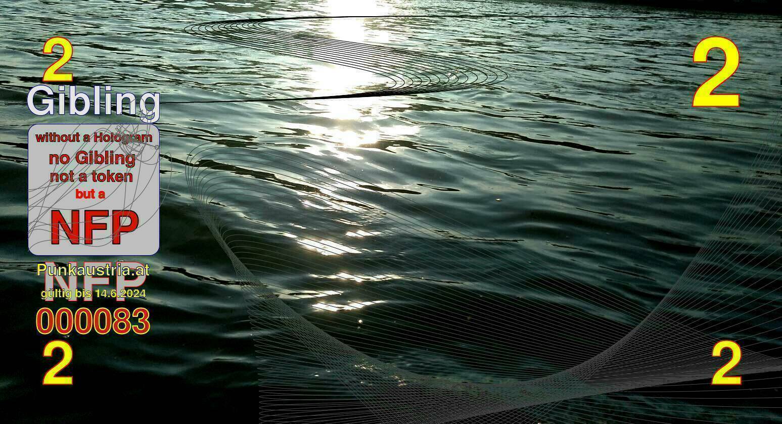 | Caption-Abstract | NFP stays for "Non Fungible Picture". The 11th Edition of our community currency Gibling is built on series of unique pictures. Each image file is unique by serial number and has a own a sha256 checksum. This data is stored in the metatags of the next picture of the series. In the metatags of the first image of the series you can find this text signed in our cryptocurrency Givecoin, created in 2014; NFPs is a fork of the Givecoin blockchain. With the NFPs we extend our ECO system in the context of process art. In this way, the Infolab of the Stadtwerkstatt wants to show another critical position on the logical truths in the new digital information society. The serial number of this image is 000083 and can also be found in the metatag "Original Transmission Reference". The checksum of the previous image is 33e1b1e033117bd1d7965a6f411c31c95ab43c2179a887de96ca94be10e3f7fa and is also stored in the metatag: "Edit Status". Your bitcoinaddress: 12C19kZPgifyWyARdrTPmjey7QvabJzDCn. Your Givecoinaddress:Is printed on the back of the Gibling. To keep the process open, visit https://gibling.stwst.at and follow the instructions." |