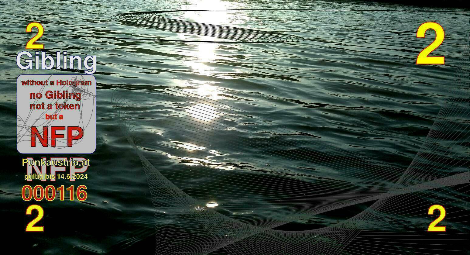 | Caption-Abstract | NFP stays for "Non Fungible Picture". The 11th Edition of our community currency Gibling is built on series of unique pictures. Each image file is unique by serial number and has a own a sha256 checksum. This data is stored in the metatags of the next picture of the series. In the metatags of the first image of the series you can find this text signed in our cryptocurrency Givecoin, created in 2014; NFPs is a fork of the Givecoin blockchain. With the NFPs we extend our ECO system in the context of process art. In this way, the Infolab of the Stadtwerkstatt wants to show another critical position on the logical truths in the new digital information society. The serial number of this image is 000116 and can also be found in the metatag "Original Transmission Reference". The checksum of the previous image is a5cb81f7f73d173d5927c299fee0510f20223119ed199e8d26da607229e43efe and is also stored in the metatag: "Edit Status". Your bitcoinaddress: 12cC4gaJV85X8vCAGGMX8NvCtxLPTiVppF. Your Givecoinaddress:Is printed on the back of the Gibling. To keep the process open, visit https://gibling.stwst.at and follow the instructions." |