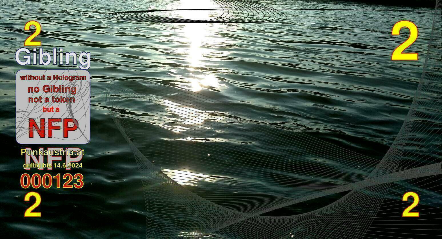 | Caption-Abstract | NFP stays for "Non Fungible Picture". The 11th Edition of our community currency Gibling is built on series of unique pictures. Each image file is unique by serial number and has a own a sha256 checksum. This data is stored in the metatags of the next picture of the series. In the metatags of the first image of the series you can find this text signed in our cryptocurrency Givecoin, created in 2014; NFPs is a fork of the Givecoin blockchain. With the NFPs we extend our ECO system in the context of process art. In this way, the Infolab of the Stadtwerkstatt wants to show another critical position on the logical truths in the new digital information society. The serial number of this image is 000123 and can also be found in the metatag "Original Transmission Reference". The checksum of the previous image is 5543006fefef974f2b9ca9b8924491b44400715e97f538796358dd22cd6f424d and is also stored in the metatag: "Edit Status". Your bitcoinaddress: 12g7nKpMv4KzEVVj1keoYwiwsUni5mHwzu. Your Givecoinaddress:Is printed on the back of the Gibling. To keep the process open, visit https://gibling.stwst.at and follow the instructions." |