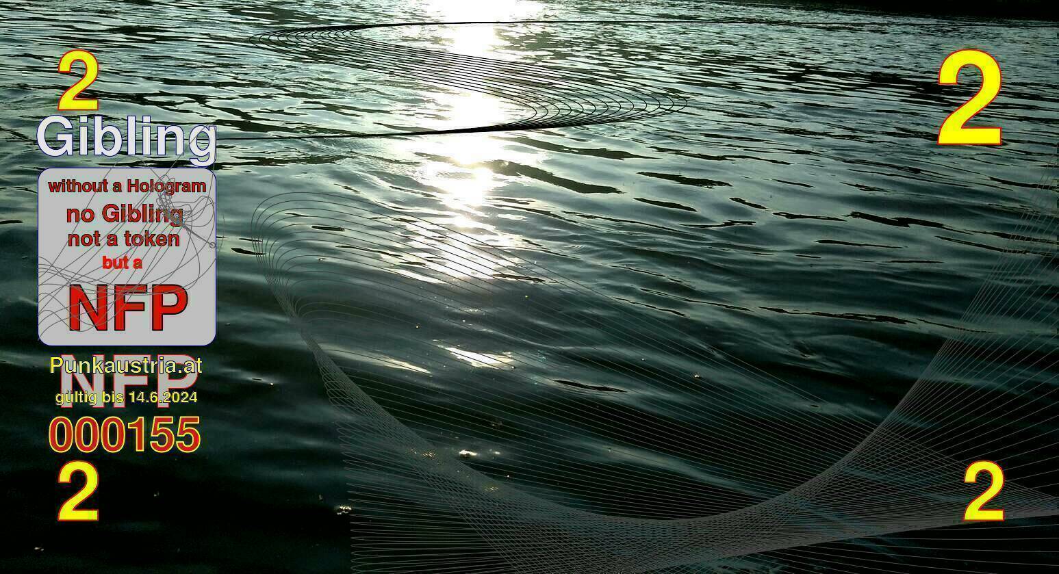 | Caption-Abstract | NFP stays for "Non Fungible Picture". The 11th Edition of our community currency Gibling is built on series of unique pictures. Each image file is unique by serial number and has a own a sha256 checksum. This data is stored in the metatags of the next picture of the series. In the metatags of the first image of the series you can find this text signed in our cryptocurrency Givecoin, created in 2014; NFPs is a fork of the Givecoin blockchain. With the NFPs we extend our ECO system in the context of process art. In this way, the Infolab of the Stadtwerkstatt wants to show another critical position on the logical truths in the new digital information society. The serial number of this image is 000155 and can also be found in the metatag "Original Transmission Reference". The checksum of the previous image is 9c66ee8d294fde79ab5ce75127e9b47fcea642837df0f6dddae56afd9c0ff117 and is also stored in the metatag: "Edit Status". Your bitcoinaddress: 134U62piSR9ULvTRrt6bmwDrQ3bhhkX8tu. Your Givecoinaddress:Is printed on the back of the Gibling. To keep the process open, visit https://gibling.stwst.at and follow the instructions." |