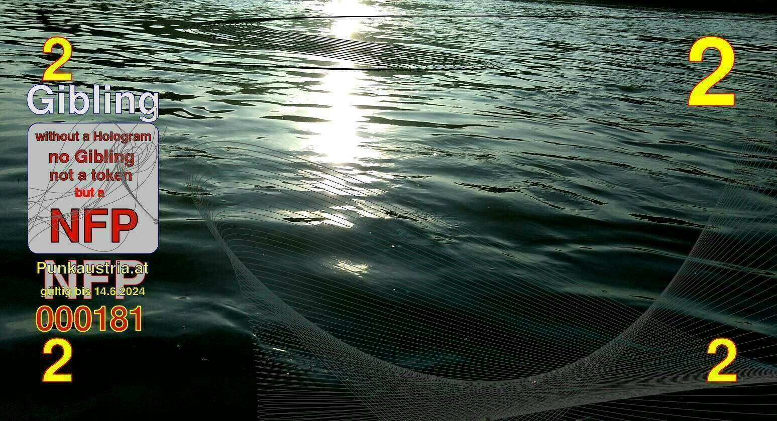 | Caption-Abstract | NFP stays for "Non Fungible Picture". The 11th Edition of our community currency Gibling is built on series of unique pictures. Each image file is unique by serial number and has a own a sha256 checksum. This data is stored in the metatags of the next picture of the series. In the metatags of the first image of the series you can find this text signed in our cryptocurrency Givecoin, created in 2014; NFPs is a fork of the Givecoin blockchain. With the NFPs we extend our ECO system in the context of process art. In this way, the Infolab of the Stadtwerkstatt wants to show another critical position on the logical truths in the new digital information society. The serial number of this image is 000181 and can also be found in the metatag "Original Transmission Reference". The checksum of the previous image is 658ecded8beca2385fec58687b71fb16050e82da1a9e1a58ca78c4429e43b60f and is also stored in the metatag: "Edit Status". Your bitcoinaddress: 13M1eSE9yRzmJo3stGYiy44NxCfksWnfXm. Your Givecoinaddress:Is printed on the back of the Gibling. To keep the process open, visit https://gibling.stwst.at and follow the instructions." |