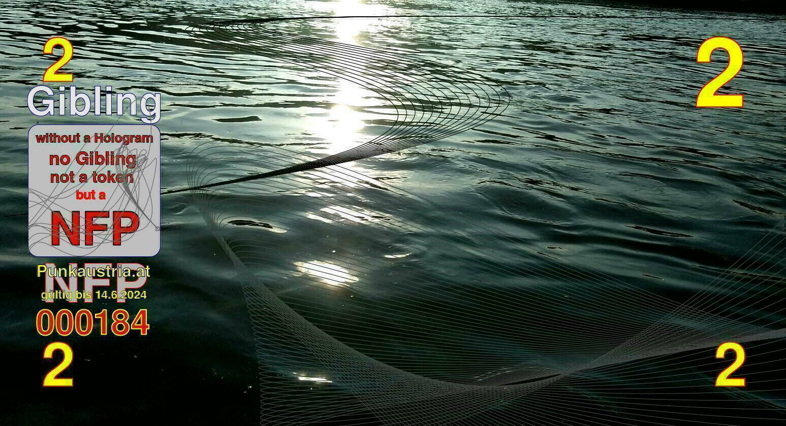 | Caption-Abstract | NFP stays for "Non Fungible Picture". The 11th Edition of our community currency Gibling is built on series of unique pictures. Each image file is unique by serial number and has a own a sha256 checksum. This data is stored in the metatags of the next picture of the series. In the metatags of the first image of the series you can find this text signed in our cryptocurrency Givecoin, created in 2014; NFPs is a fork of the Givecoin blockchain. With the NFPs we extend our ECO system in the context of process art. In this way, the Infolab of the Stadtwerkstatt wants to show another critical position on the logical truths in the new digital information society. The serial number of this image is 000184 and can also be found in the metatag "Original Transmission Reference". The checksum of the previous image is 5df254ad410edd2762a2f96fca316ccf06cd993edeb2e524e12f539f9c4572d7 and is also stored in the metatag: "Edit Status". Your bitcoinaddress: 13PRUw49Z5FvwgFNhMV2jxBLHxs7J68wbU. Your Givecoinaddress:Is printed on the back of the Gibling. To keep the process open, visit https://gibling.stwst.at and follow the instructions." |