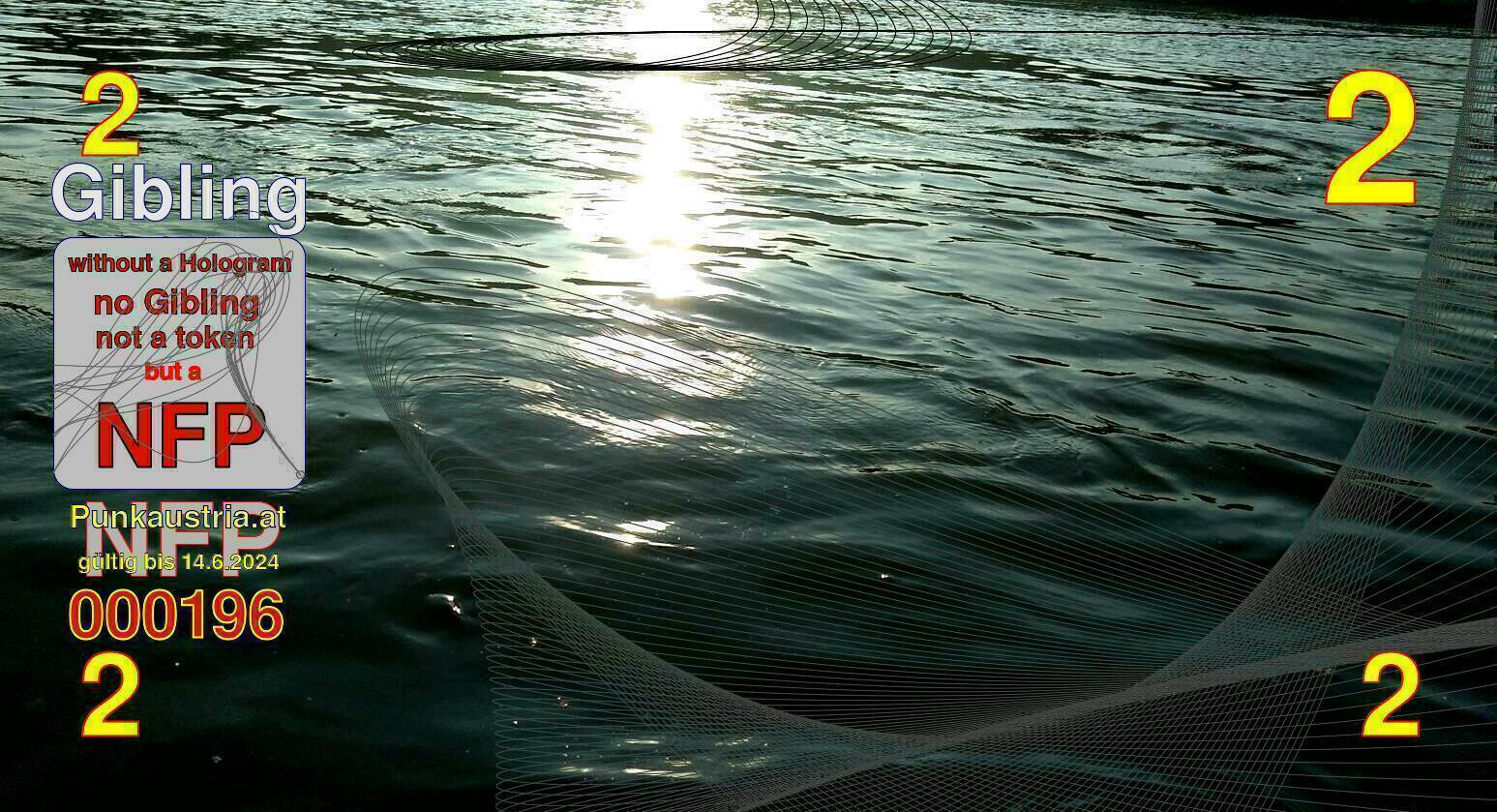 | Caption-Abstract | NFP stays for "Non Fungible Picture". The 11th Edition of our community currency Gibling is built on series of unique pictures. Each image file is unique by serial number and has a own a sha256 checksum. This data is stored in the metatags of the next picture of the series. In the metatags of the first image of the series you can find this text signed in our cryptocurrency Givecoin, created in 2014; NFPs is a fork of the Givecoin blockchain. With the NFPs we extend our ECO system in the context of process art. In this way, the Infolab of the Stadtwerkstatt wants to show another critical position on the logical truths in the new digital information society. The serial number of this image is 000196 and can also be found in the metatag "Original Transmission Reference". The checksum of the previous image is 21c6a84329bf69fc21f85bd8791096269254dd9b317d6876ffecf71067535f0c and is also stored in the metatag: "Edit Status". Your bitcoinaddress: 13aKHgX9vap6r72uzPPtST3YnfyRdNfWHR. Your Givecoinaddress:Is printed on the back of the Gibling. To keep the process open, visit https://gibling.stwst.at and follow the instructions." |