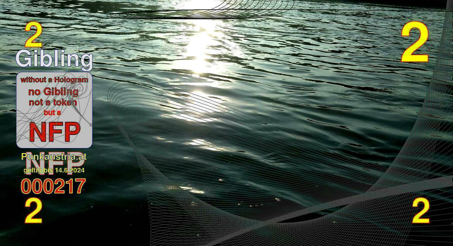 | Caption-Abstract | NFP stays for "Non Fungible Picture". The 11th Edition of our community currency Gibling is built on series of unique pictures. Each image file is unique by serial number and has a own a sha256 checksum. This data is stored in the metatags of the next picture of the series. In the metatags of the first image of the series you can find this text signed in our cryptocurrency Givecoin, created in 2014; NFPs is a fork of the Givecoin blockchain. With the NFPs we extend our ECO system in the context of process art. In this way, the Infolab of the Stadtwerkstatt wants to show another critical position on the logical truths in the new digital information society. The serial number of this image is 000217 and can also be found in the metatag "Original Transmission Reference". The checksum of the previous image is 52e8761fc2bb4b72199a32ee518648e9def6d57a9e4e7d0ee3573060c6a70cdc and is also stored in the metatag: "Edit Status". Your bitcoinaddress: 13oUhdH7XB6VdzxUC15PvP5G7krS8h9ojG. Your Givecoinaddress:Is printed on the back of the Gibling. To keep the process open, visit https://gibling.stwst.at and follow the instructions." |
