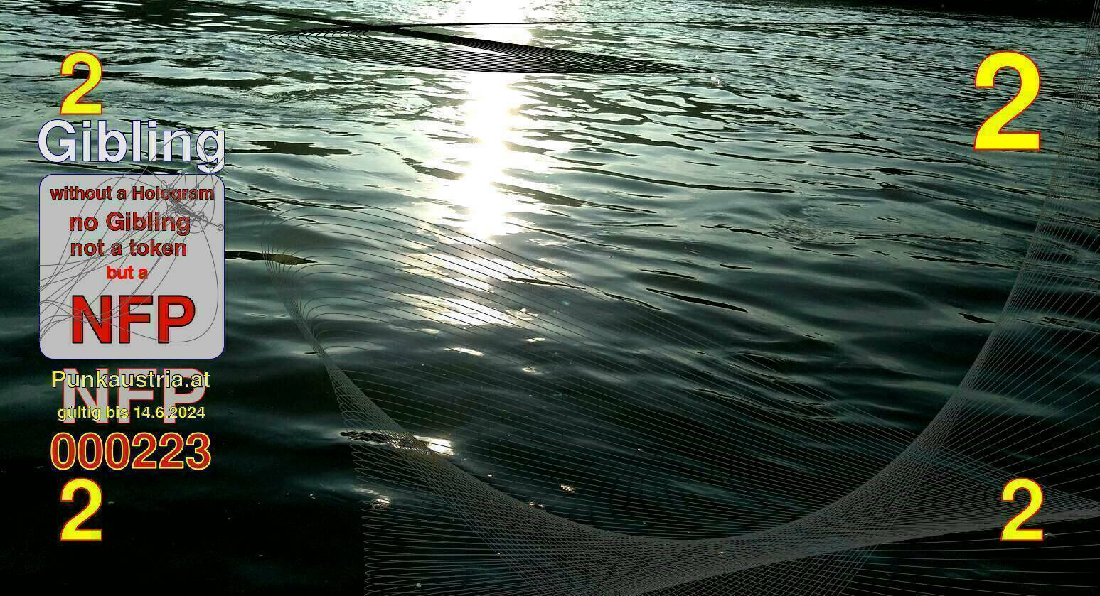 | Caption-Abstract | NFP stays for "Non Fungible Picture". The 11th Edition of our community currency Gibling is built on series of unique pictures. Each image file is unique by serial number and has a own a sha256 checksum. This data is stored in the metatags of the next picture of the series. In the metatags of the first image of the series you can find this text signed in our cryptocurrency Givecoin, created in 2014; NFPs is a fork of the Givecoin blockchain. With the NFPs we extend our ECO system in the context of process art. In this way, the Infolab of the Stadtwerkstatt wants to show another critical position on the logical truths in the new digital information society. The serial number of this image is 000223 and can also be found in the metatag "Original Transmission Reference". The checksum of the previous image is 2d0bc65cb7d72d46cd2457d71ec5104a0d39c2fad1b7c90e7a4f601757b8991d and is also stored in the metatag: "Edit Status". Your bitcoinaddress: 13vMDNS2Ntqix33EaiyFkiGpYwKSrEm4qo. Your Givecoinaddress:Is printed on the back of the Gibling. To keep the process open, visit https://gibling.stwst.at and follow the instructions." |