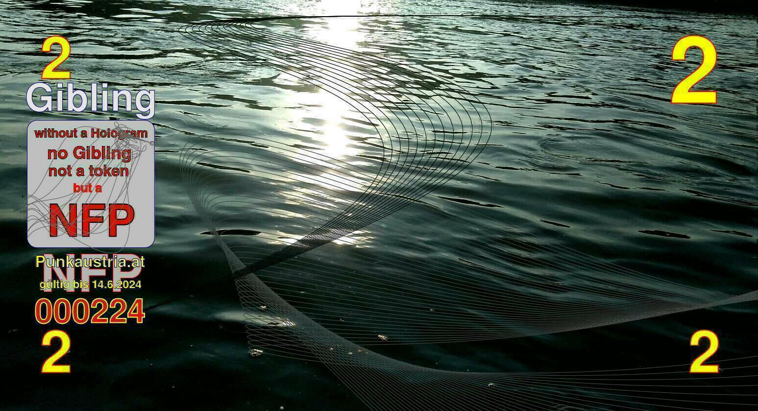 | Caption-Abstract | NFP stays for "Non Fungible Picture". The 11th Edition of our community currency Gibling is built on series of unique pictures. Each image file is unique by serial number and has a own a sha256 checksum. This data is stored in the metatags of the next picture of the series. In the metatags of the first image of the series you can find this text signed in our cryptocurrency Givecoin, created in 2014; NFPs is a fork of the Givecoin blockchain. With the NFPs we extend our ECO system in the context of process art. In this way, the Infolab of the Stadtwerkstatt wants to show another critical position on the logical truths in the new digital information society. The serial number of this image is 000224 and can also be found in the metatag "Original Transmission Reference". The checksum of the previous image is 704fde4011005384722f22465bc8a062e5e09820ee1cba9810a644407e005b3a and is also stored in the metatag: "Edit Status". Your bitcoinaddress: 13wWwU2AacPEz2fcHLEmdaHUAp2g7Ur6kZ. Your Givecoinaddress:Is printed on the back of the Gibling. To keep the process open, visit https://gibling.stwst.at and follow the instructions." |