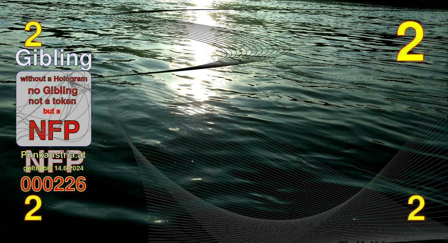 | Caption-Abstract | NFP stays for "Non Fungible Picture". The 11th Edition of our community currency Gibling is built on series of unique pictures. Each image file is unique by serial number and has a own a sha256 checksum. This data is stored in the metatags of the next picture of the series. In the metatags of the first image of the series you can find this text signed in our cryptocurrency Givecoin, created in 2014; NFPs is a fork of the Givecoin blockchain. With the NFPs we extend our ECO system in the context of process art. In this way, the Infolab of the Stadtwerkstatt wants to show another critical position on the logical truths in the new digital information society. The serial number of this image is 000226 and can also be found in the metatag "Original Transmission Reference". The checksum of the previous image is 97cba1370c02d97e23ba860e2d6fa56d472b21a3dd9622e99c57f3e43efe0867 and is also stored in the metatag: "Edit Status". Your bitcoinaddress: 13wa4naXdARwgDNBDQxMMaGRu27ph9QZDC. Your Givecoinaddress:Is printed on the back of the Gibling. To keep the process open, visit https://gibling.stwst.at and follow the instructions." |