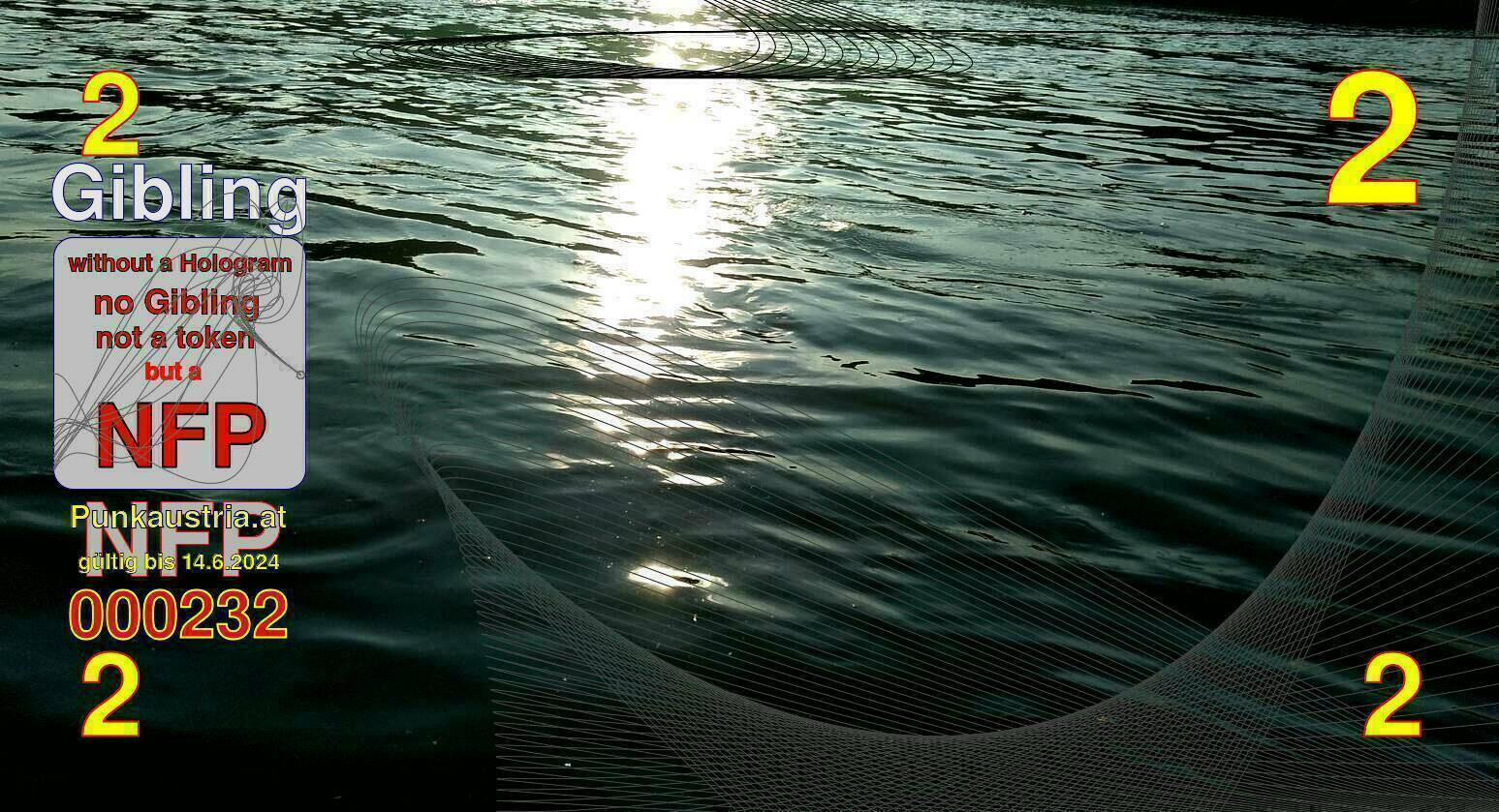 | Caption-Abstract | NFP stays for "Non Fungible Picture". The 11th Edition of our community currency Gibling is built on series of unique pictures. Each image file is unique by serial number and has a own a sha256 checksum. This data is stored in the metatags of the next picture of the series. In the metatags of the first image of the series you can find this text signed in our cryptocurrency Givecoin, created in 2014; NFPs is a fork of the Givecoin blockchain. With the NFPs we extend our ECO system in the context of process art. In this way, the Infolab of the Stadtwerkstatt wants to show another critical position on the logical truths in the new digital information society. The serial number of this image is 000232 and can also be found in the metatag "Original Transmission Reference". The checksum of the previous image is 42559230a5031b45351dce1cb47600885e287b9220af511253a281698e2d780a and is also stored in the metatag: "Edit Status". Your bitcoinaddress: 143qjgYfYwWDuycLmy6AKPUDJDdnc6xLF6. Your Givecoinaddress:Is printed on the back of the Gibling. To keep the process open, visit https://gibling.stwst.at and follow the instructions." |