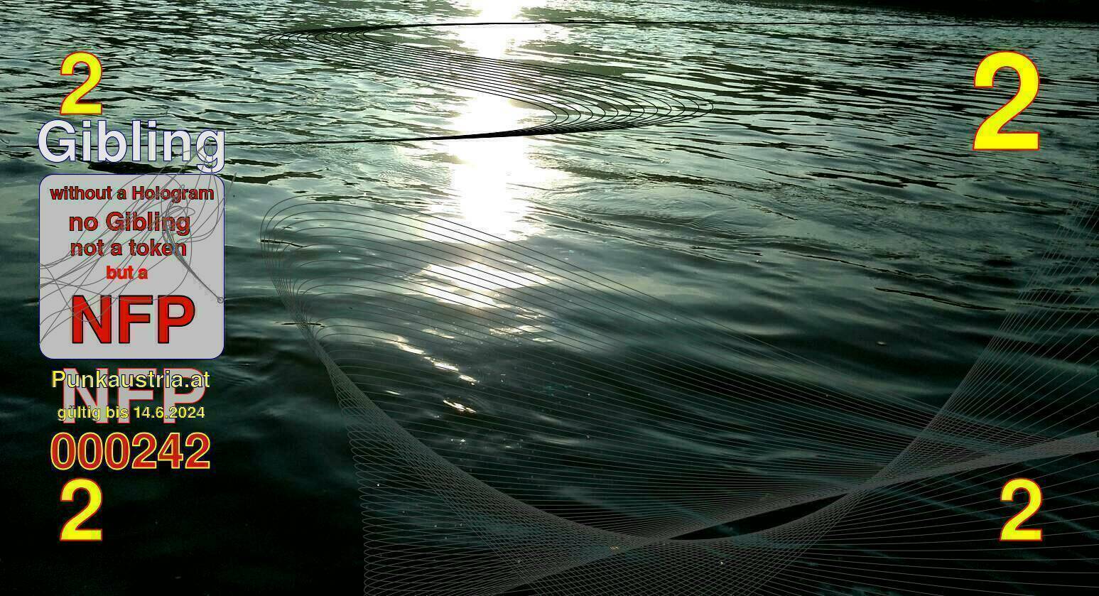 | Caption-Abstract | NFP stays for "Non Fungible Picture". The 11th Edition of our community currency Gibling is built on series of unique pictures. Each image file is unique by serial number and has a own a sha256 checksum. This data is stored in the metatags of the next picture of the series. In the metatags of the first image of the series you can find this text signed in our cryptocurrency Givecoin, created in 2014; NFPs is a fork of the Givecoin blockchain. With the NFPs we extend our ECO system in the context of process art. In this way, the Infolab of the Stadtwerkstatt wants to show another critical position on the logical truths in the new digital information society. The serial number of this image is 000242 and can also be found in the metatag "Original Transmission Reference". The checksum of the previous image is 5d95682cbcc510996d4a3b86c75b9d3112ed9a323700cdf10fec1e42c1c9a179 and is also stored in the metatag: "Edit Status". Your bitcoinaddress: 14AozewrSdEyHrk9qMxSYQABso6YNsxp5V. Your Givecoinaddress:Is printed on the back of the Gibling. To keep the process open, visit https://gibling.stwst.at and follow the instructions." |