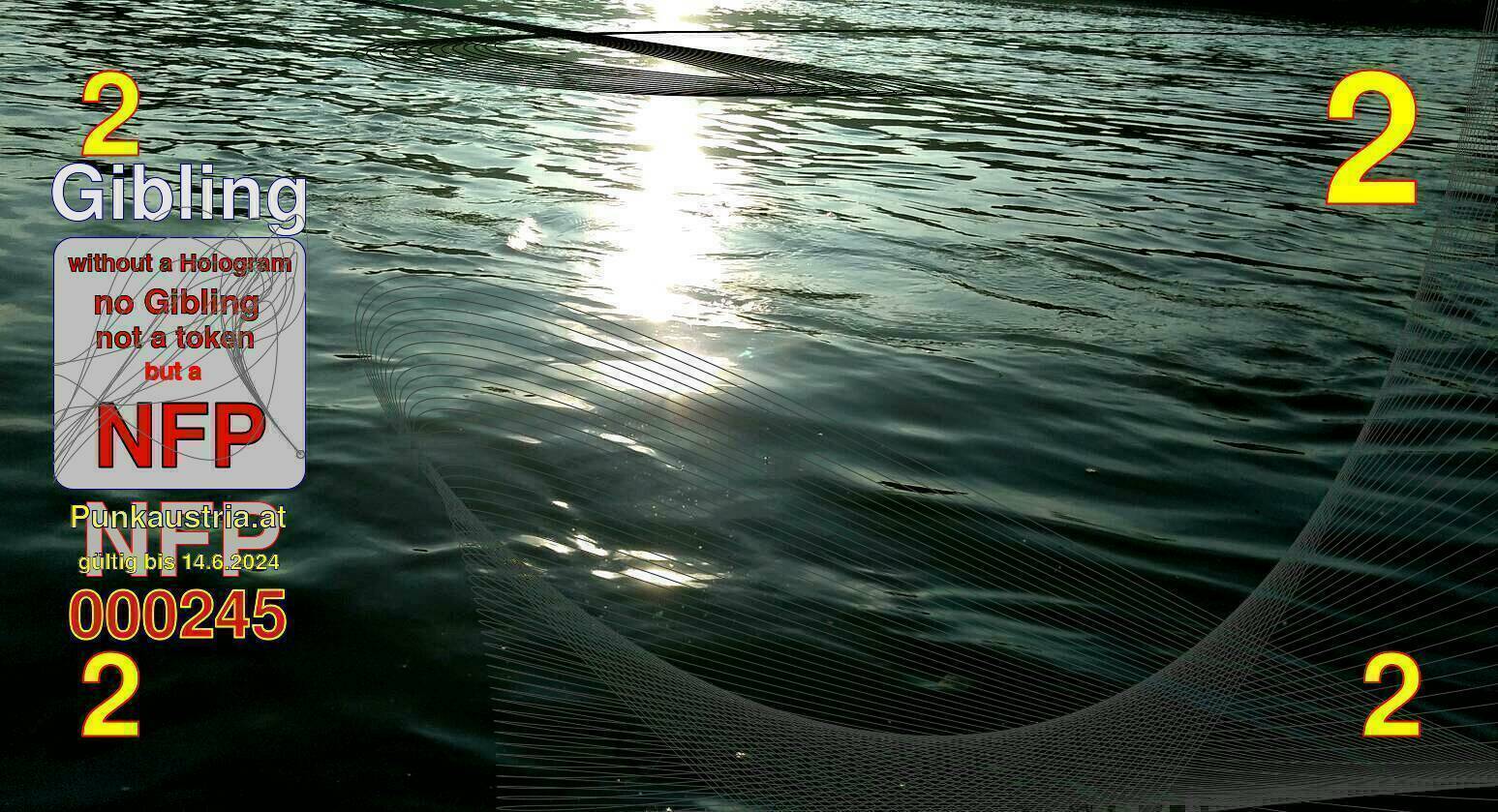 | Caption-Abstract | NFP stays for "Non Fungible Picture". The 11th Edition of our community currency Gibling is built on series of unique pictures. Each image file is unique by serial number and has a own a sha256 checksum. This data is stored in the metatags of the next picture of the series. In the metatags of the first image of the series you can find this text signed in our cryptocurrency Givecoin, created in 2014; NFPs is a fork of the Givecoin blockchain. With the NFPs we extend our ECO system in the context of process art. In this way, the Infolab of the Stadtwerkstatt wants to show another critical position on the logical truths in the new digital information society. The serial number of this image is 000245 and can also be found in the metatag "Original Transmission Reference". The checksum of the previous image is 8c8c2fbb5fdae23998e5057e800c49feb6821ea09b65ce305c51aed8d8a9ee4d and is also stored in the metatag: "Edit Status". Your bitcoinaddress: 14DKGVWBDEFGxH7y9wG4vEAczBf949aFFq. Your Givecoinaddress:Is printed on the back of the Gibling. To keep the process open, visit https://gibling.stwst.at and follow the instructions." |