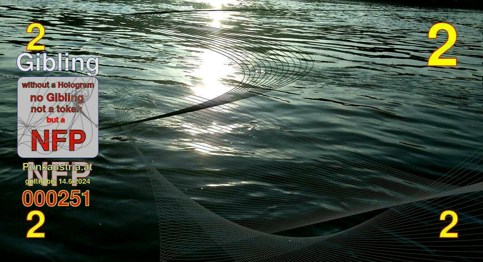 | Caption-Abstract | NFP stays for "Non Fungible Picture". The 11th Edition of our community currency Gibling is built on series of unique pictures. Each image file is unique by serial number and has a own a sha256 checksum. This data is stored in the metatags of the next picture of the series. In the metatags of the first image of the series you can find this text signed in our cryptocurrency Givecoin, created in 2014; NFPs is a fork of the Givecoin blockchain. With the NFPs we extend our ECO system in the context of process art. In this way, the Infolab of the Stadtwerkstatt wants to show another critical position on the logical truths in the new digital information society. The serial number of this image is 000251 and can also be found in the metatag "Original Transmission Reference". The checksum of the previous image is f3aa1a1419add373064110c7556f79cf6be3432bbc6ee21e4232061e57ab20a7 and is also stored in the metatag: "Edit Status". Your bitcoinaddress: 14HNibLBeL8KVjsC1KTSgj982Nsj4NqELN. Your Givecoinaddress:Is printed on the back of the Gibling. To keep the process open, visit https://gibling.stwst.at and follow the instructions." |