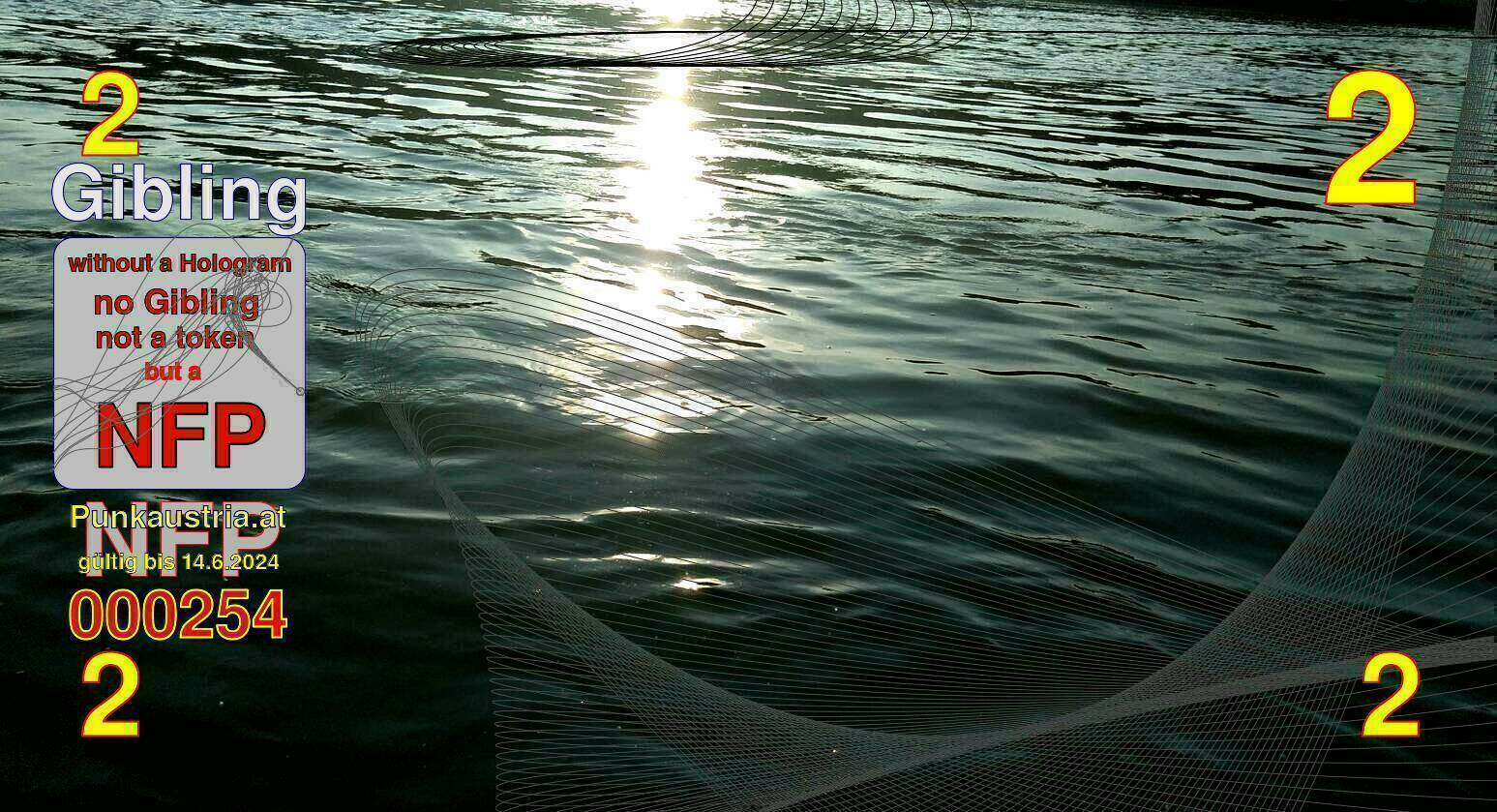 | Caption-Abstract | NFP stays for "Non Fungible Picture". The 11th Edition of our community currency Gibling is built on series of unique pictures. Each image file is unique by serial number and has a own a sha256 checksum. This data is stored in the metatags of the next picture of the series. In the metatags of the first image of the series you can find this text signed in our cryptocurrency Givecoin, created in 2014; NFPs is a fork of the Givecoin blockchain. With the NFPs we extend our ECO system in the context of process art. In this way, the Infolab of the Stadtwerkstatt wants to show another critical position on the logical truths in the new digital information society. The serial number of this image is 000254 and can also be found in the metatag "Original Transmission Reference". The checksum of the previous image is a4bbeb3e6ac166fb02ef57852327b808efe218cfa583d4ff668d473ca1c3f105 and is also stored in the metatag: "Edit Status". Your bitcoinaddress: 14L2pc6zmFjud9vkKx8ufc1gi2GbbL6HiU. Your Givecoinaddress:Is printed on the back of the Gibling. To keep the process open, visit https://gibling.stwst.at and follow the instructions." |