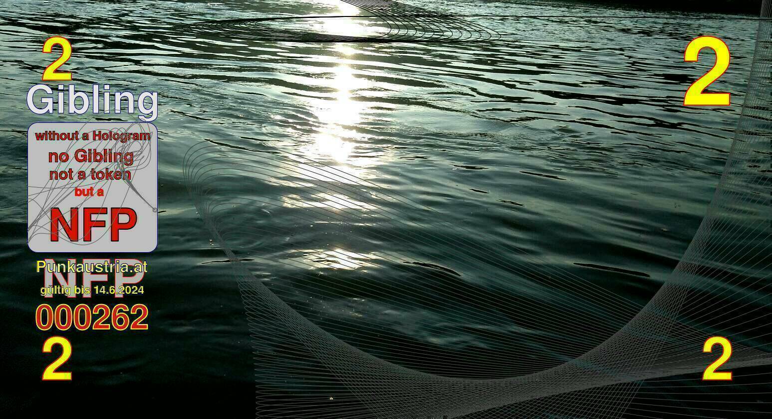| Caption-Abstract | NFP stays for "Non Fungible Picture". The 11th Edition of our community currency Gibling is built on series of unique pictures. Each image file is unique by serial number and has a own a sha256 checksum. This data is stored in the metatags of the next picture of the series. In the metatags of the first image of the series you can find this text signed in our cryptocurrency Givecoin, created in 2014; NFPs is a fork of the Givecoin blockchain. With the NFPs we extend our ECO system in the context of process art. In this way, the Infolab of the Stadtwerkstatt wants to show another critical position on the logical truths in the new digital information society. The serial number of this image is 000262 and can also be found in the metatag "Original Transmission Reference". The checksum of the previous image is aab46d5b3fd2edb166ebc6c94c0c1a6f4ea30bef6273f20c586089871207288c and is also stored in the metatag: "Edit Status". Your bitcoinaddress: 14R5DP55HqXn3Ccsw76UY4qBZBm5VCSCJq. Your Givecoinaddress:Is printed on the back of the Gibling. To keep the process open, visit https://gibling.stwst.at and follow the instructions." |