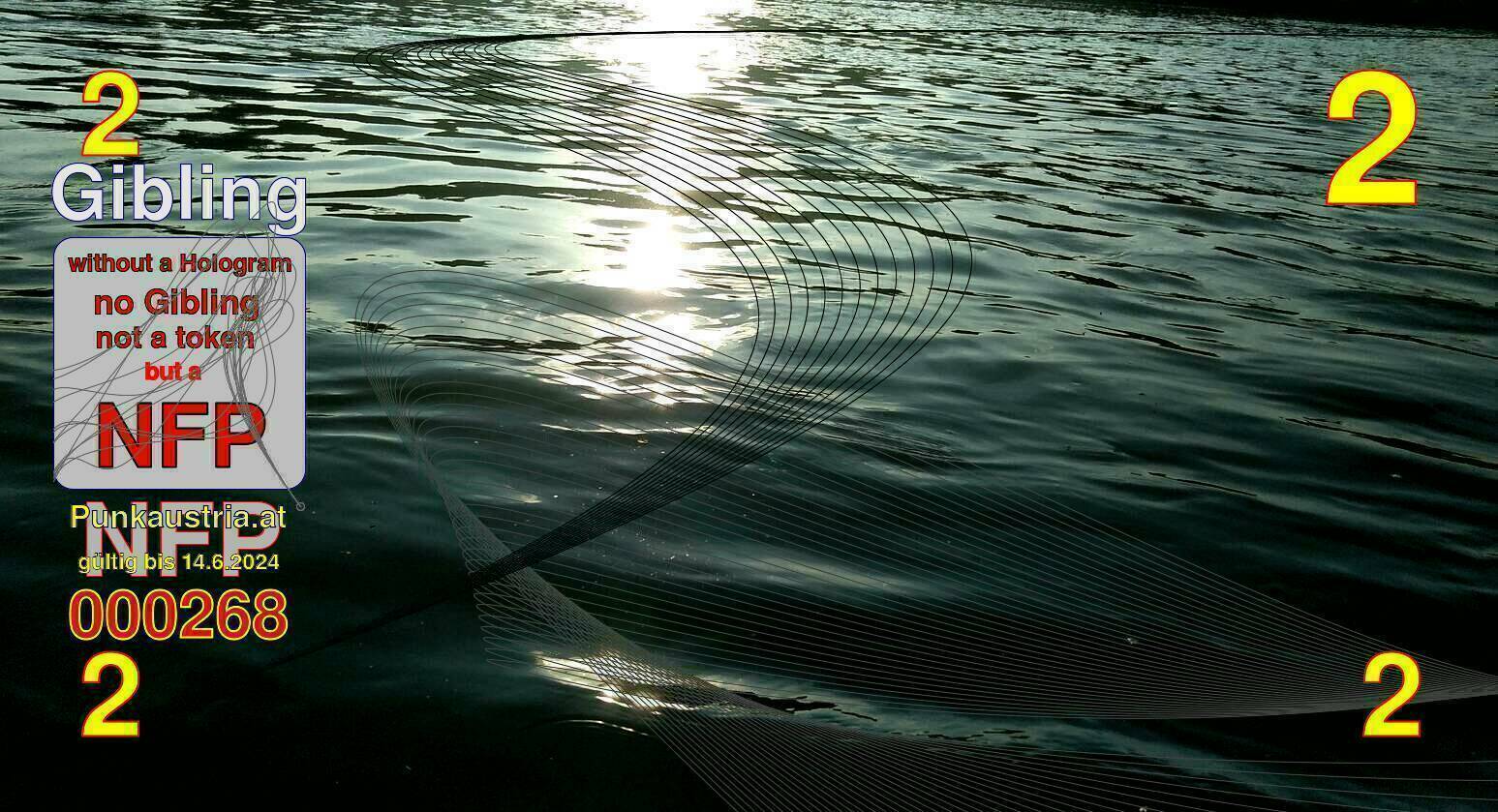 | Caption-Abstract | NFP stays for "Non Fungible Picture". The 11th Edition of our community currency Gibling is built on series of unique pictures. Each image file is unique by serial number and has a own a sha256 checksum. This data is stored in the metatags of the next picture of the series. In the metatags of the first image of the series you can find this text signed in our cryptocurrency Givecoin, created in 2014; NFPs is a fork of the Givecoin blockchain. With the NFPs we extend our ECO system in the context of process art. In this way, the Infolab of the Stadtwerkstatt wants to show another critical position on the logical truths in the new digital information society. The serial number of this image is 000268 and can also be found in the metatag "Original Transmission Reference". The checksum of the previous image is 973306bd15a8ecdf36a03483df840d6c5b75321a1baada269b50025e3a273ab7 and is also stored in the metatag: "Edit Status". Your bitcoinaddress: 14WztpDQ9nn7XvrttxbYbMB4zfMw1tHEF4. Your Givecoinaddress:Is printed on the back of the Gibling. To keep the process open, visit https://gibling.stwst.at and follow the instructions." |