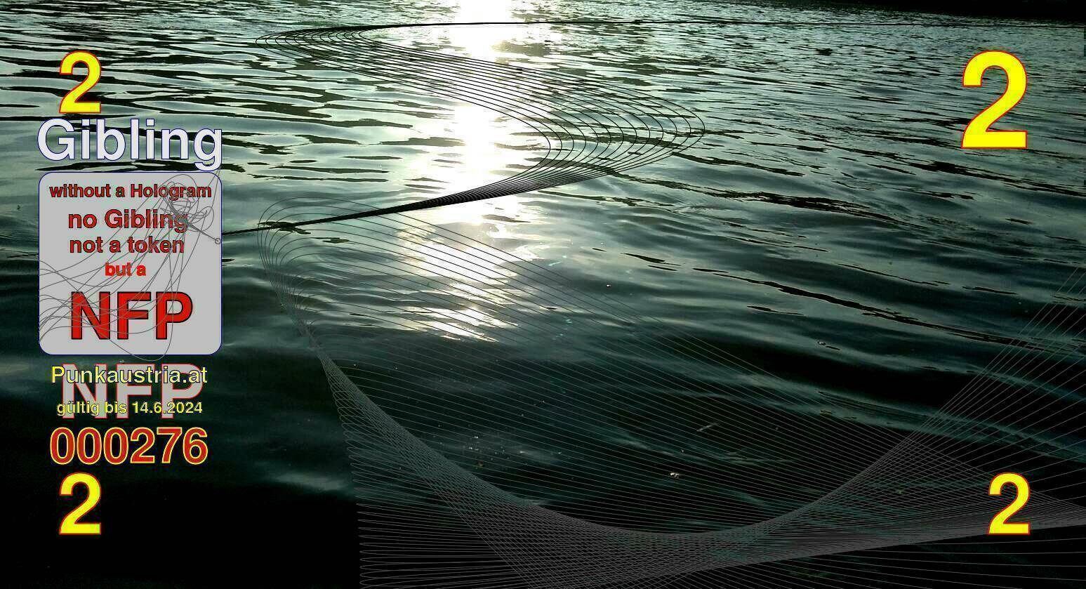 | Caption-Abstract | NFP stays for "Non Fungible Picture". The 11th Edition of our community currency Gibling is built on series of unique pictures. Each image file is unique by serial number and has a own a sha256 checksum. This data is stored in the metatags of the next picture of the series. In the metatags of the first image of the series you can find this text signed in our cryptocurrency Givecoin, created in 2014; NFPs is a fork of the Givecoin blockchain. With the NFPs we extend our ECO system in the context of process art. In this way, the Infolab of the Stadtwerkstatt wants to show another critical position on the logical truths in the new digital information society. The serial number of this image is 000276 and can also be found in the metatag "Original Transmission Reference". The checksum of the previous image is 85e2a59afef5a241bfc945a78a5e65f3ad9130cedba0ae6341bde3b9f1df7022 and is also stored in the metatag: "Edit Status". Your bitcoinaddress: 14cS2muKQzr5baRannyHYUXREDiHAHM2Rr. Your Givecoinaddress:Is printed on the back of the Gibling. To keep the process open, visit https://gibling.stwst.at and follow the instructions." |