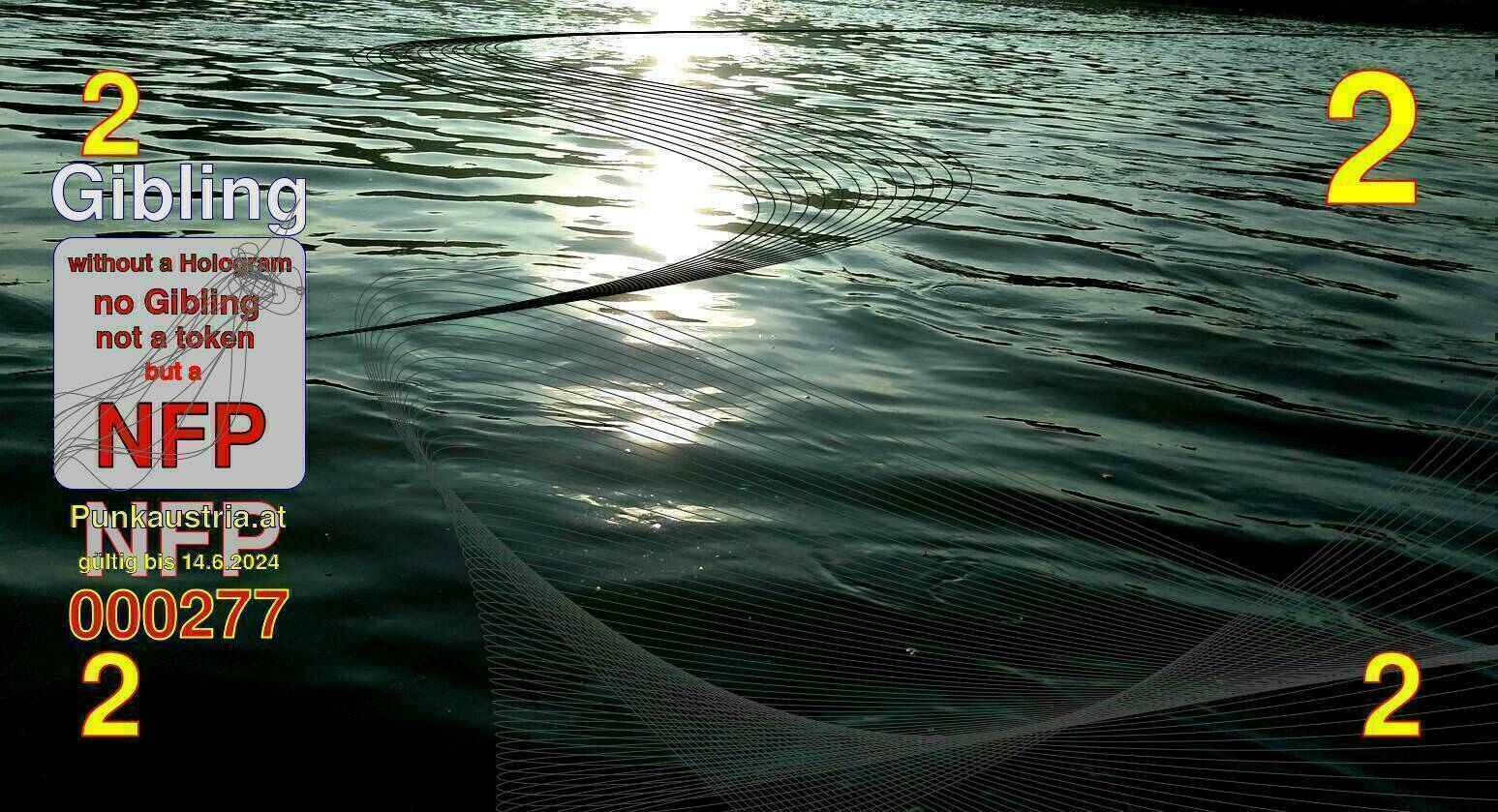 | Caption-Abstract | NFP stays for "Non Fungible Picture". The 11th Edition of our community currency Gibling is built on series of unique pictures. Each image file is unique by serial number and has a own a sha256 checksum. This data is stored in the metatags of the next picture of the series. In the metatags of the first image of the series you can find this text signed in our cryptocurrency Givecoin, created in 2014; NFPs is a fork of the Givecoin blockchain. With the NFPs we extend our ECO system in the context of process art. In this way, the Infolab of the Stadtwerkstatt wants to show another critical position on the logical truths in the new digital information society. The serial number of this image is 000277 and can also be found in the metatag "Original Transmission Reference". The checksum of the previous image is aa75c2e24c30f99b546f2b6540214879afbbb10e1f244e04bb3beab9f8bcd3fe and is also stored in the metatag: "Edit Status". Your bitcoinaddress: 14dF1j31ANduPZPaXwMnzyFimvZvjxi2rP. Your Givecoinaddress:Is printed on the back of the Gibling. To keep the process open, visit https://gibling.stwst.at and follow the instructions." |