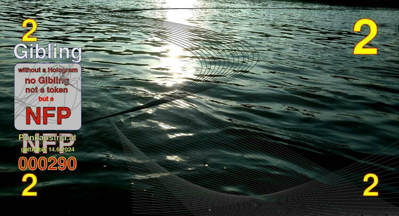 | Caption-Abstract | NFP stays for "Non Fungible Picture". The 11th Edition of our community currency Gibling is built on series of unique pictures. Each image file is unique by serial number and has a own a sha256 checksum. This data is stored in the metatags of the next picture of the series. In the metatags of the first image of the series you can find this text signed in our cryptocurrency Givecoin, created in 2014; NFPs is a fork of the Givecoin blockchain. With the NFPs we extend our ECO system in the context of process art. In this way, the Infolab of the Stadtwerkstatt wants to show another critical position on the logical truths in the new digital information society. The serial number of this image is 000290 and can also be found in the metatag "Original Transmission Reference". The checksum of the previous image is 07900fc978f6919a7412bb9e91d8262638694a312b8d662b12e60e455bfc4ddc and is also stored in the metatag: "Edit Status". Your bitcoinaddress: 14p9CxsgbPnLgnjhosn6Zn5b2YZhWYy4W5. Your Givecoinaddress:Is printed on the back of the Gibling. To keep the process open, visit https://gibling.stwst.at and follow the instructions." |