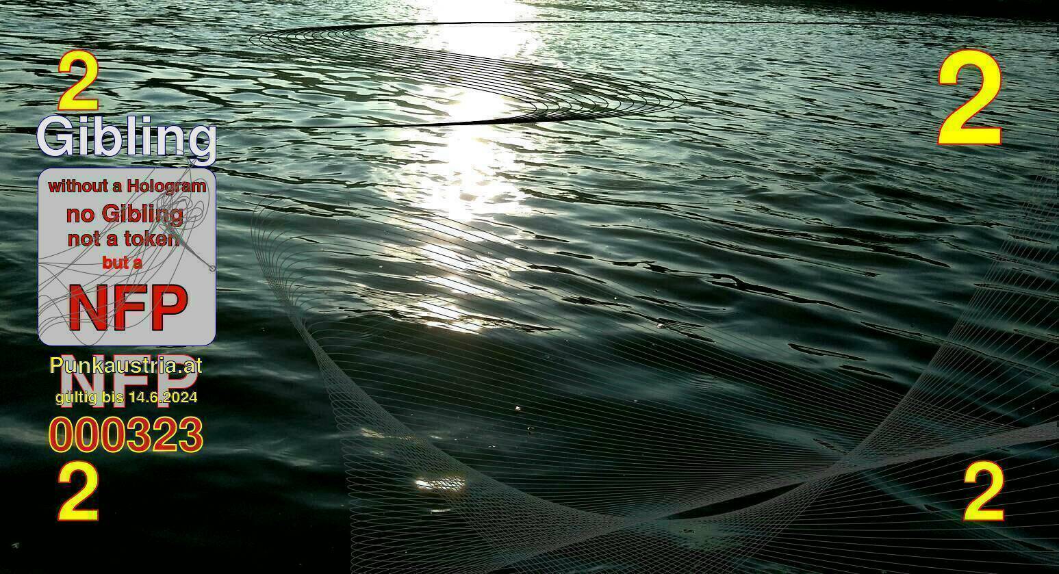 | Caption-Abstract | NFP stays for "Non Fungible Picture". The 11th Edition of our community currency Gibling is built on series of unique pictures. Each image file is unique by serial number and has a own a sha256 checksum. This data is stored in the metatags of the next picture of the series. In the metatags of the first image of the series you can find this text signed in our cryptocurrency Givecoin, created in 2014; NFPs is a fork of the Givecoin blockchain. With the NFPs we extend our ECO system in the context of process art. In this way, the Infolab of the Stadtwerkstatt wants to show another critical position on the logical truths in the new digital information society. The serial number of this image is 000323 and can also be found in the metatag "Original Transmission Reference". The checksum of the previous image is dcb16748054251a73aaa34662a10bffce9632eea4856ce850dc9551026f81c11 and is also stored in the metatag: "Edit Status". Your bitcoinaddress: 15FAMw2GGVugAkRPaRy9JUeb7EetoSHbsj. Your Givecoinaddress:Is printed on the back of the Gibling. To keep the process open, visit https://gibling.stwst.at and follow the instructions." |