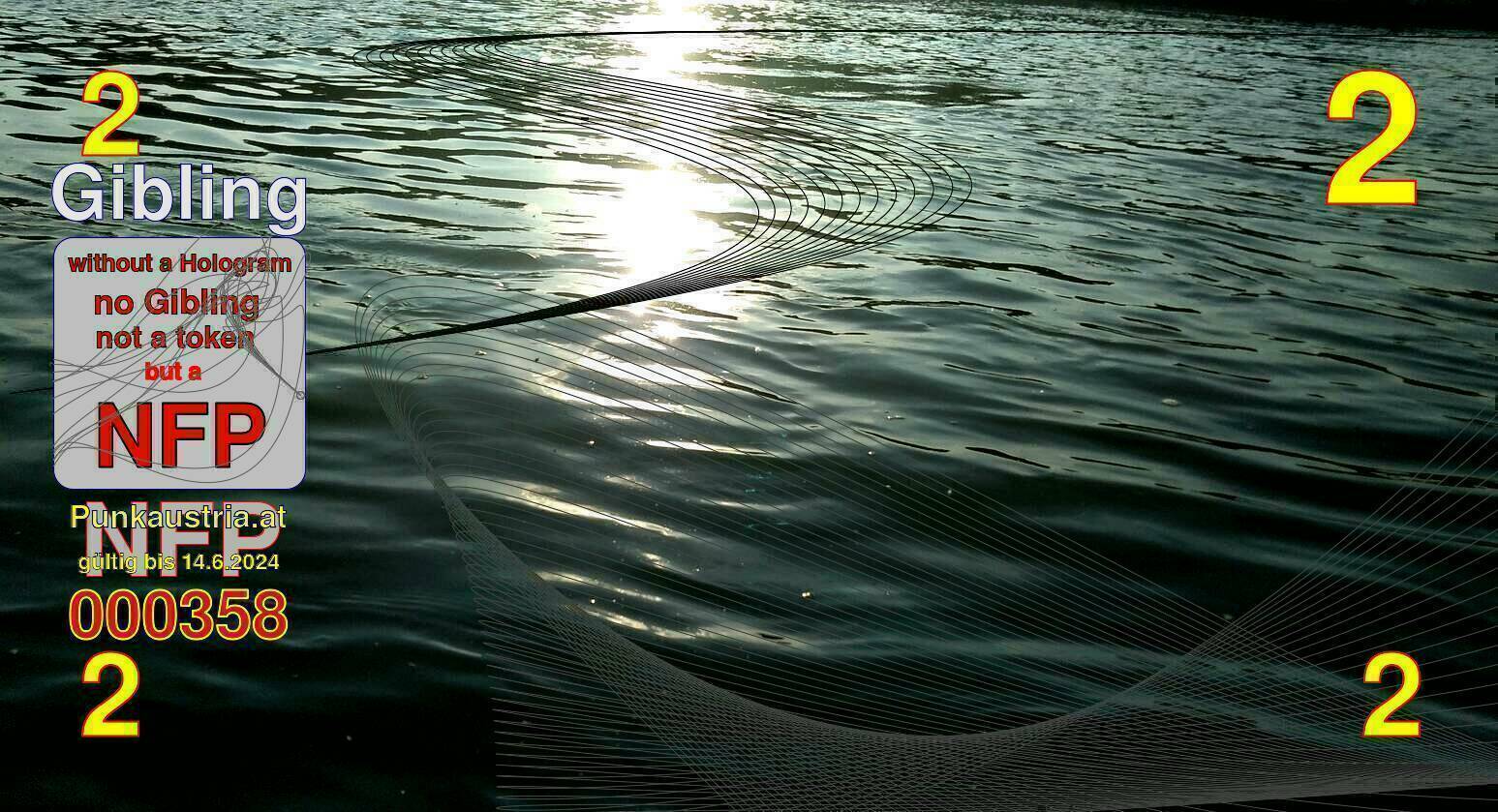 | Caption-Abstract | NFP stays for "Non Fungible Picture". The 11th Edition of our community currency Gibling is built on series of unique pictures. Each image file is unique by serial number and has a own a sha256 checksum. This data is stored in the metatags of the next picture of the series. In the metatags of the first image of the series you can find this text signed in our cryptocurrency Givecoin, created in 2014; NFPs is a fork of the Givecoin blockchain. With the NFPs we extend our ECO system in the context of process art. In this way, the Infolab of the Stadtwerkstatt wants to show another critical position on the logical truths in the new digital information society. The serial number of this image is 000358 and can also be found in the metatag "Original Transmission Reference". The checksum of the previous image is f6e6c4fb0f0b8bbc06a1d2fe3dde97f32eff3082d2e48e071c241163bc5463ed and is also stored in the metatag: "Edit Status". Your bitcoinaddress: 15X9g6D5AY3pYjy3nojqffjQFWGd3qL81k. Your Givecoinaddress:Is printed on the back of the Gibling. To keep the process open, visit https://gibling.stwst.at and follow the instructions." |