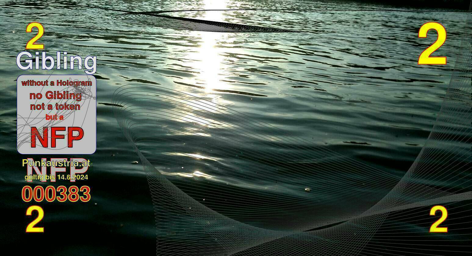 | Caption-Abstract | NFP stays for "Non Fungible Picture". The 11th Edition of our community currency Gibling is built on series of unique pictures. Each image file is unique by serial number and has a own a sha256 checksum. This data is stored in the metatags of the next picture of the series. In the metatags of the first image of the series you can find this text signed in our cryptocurrency Givecoin, created in 2014; NFPs is a fork of the Givecoin blockchain. With the NFPs we extend our ECO system in the context of process art. In this way, the Infolab of the Stadtwerkstatt wants to show another critical position on the logical truths in the new digital information society. The serial number of this image is 000383 and can also be found in the metatag "Original Transmission Reference". The checksum of the previous image is 3274c73dfe06571aa222ac97321b2d6e92334054e740c7e46861fd3d7ea8b759 and is also stored in the metatag: "Edit Status". Your bitcoinaddress: 15udjqDS3gpRHcyzt9nhYa79ZCr3HSRVmw. Your Givecoinaddress:Is printed on the back of the Gibling. To keep the process open, visit https://gibling.stwst.at and follow the instructions." |