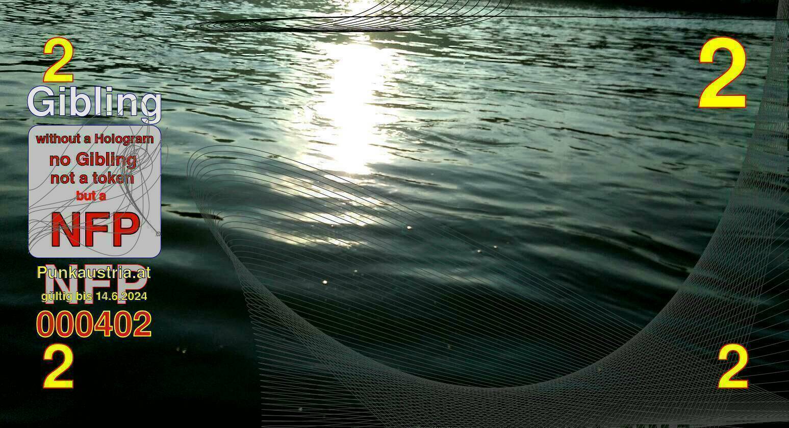 | Caption-Abstract | NFP stays for "Non Fungible Picture". The 11th Edition of our community currency Gibling is built on series of unique pictures. Each image file is unique by serial number and has a own a sha256 checksum. This data is stored in the metatags of the next picture of the series. In the metatags of the first image of the series you can find this text signed in our cryptocurrency Givecoin, created in 2014; NFPs is a fork of the Givecoin blockchain. With the NFPs we extend our ECO system in the context of process art. In this way, the Infolab of the Stadtwerkstatt wants to show another critical position on the logical truths in the new digital information society. The serial number of this image is 000402 and can also be found in the metatag "Original Transmission Reference". The checksum of the previous image is 957224d51bb5866c5075398270f7cf9c603073fab9b167f54b3315b574d91553 and is also stored in the metatag: "Edit Status". Your bitcoinaddress: 167gBWEzTthDWrQ8ZEFmw8ZYkdWgNPBL7x. Your Givecoinaddress:Is printed on the back of the Gibling. To keep the process open, visit https://gibling.stwst.at and follow the instructions." |