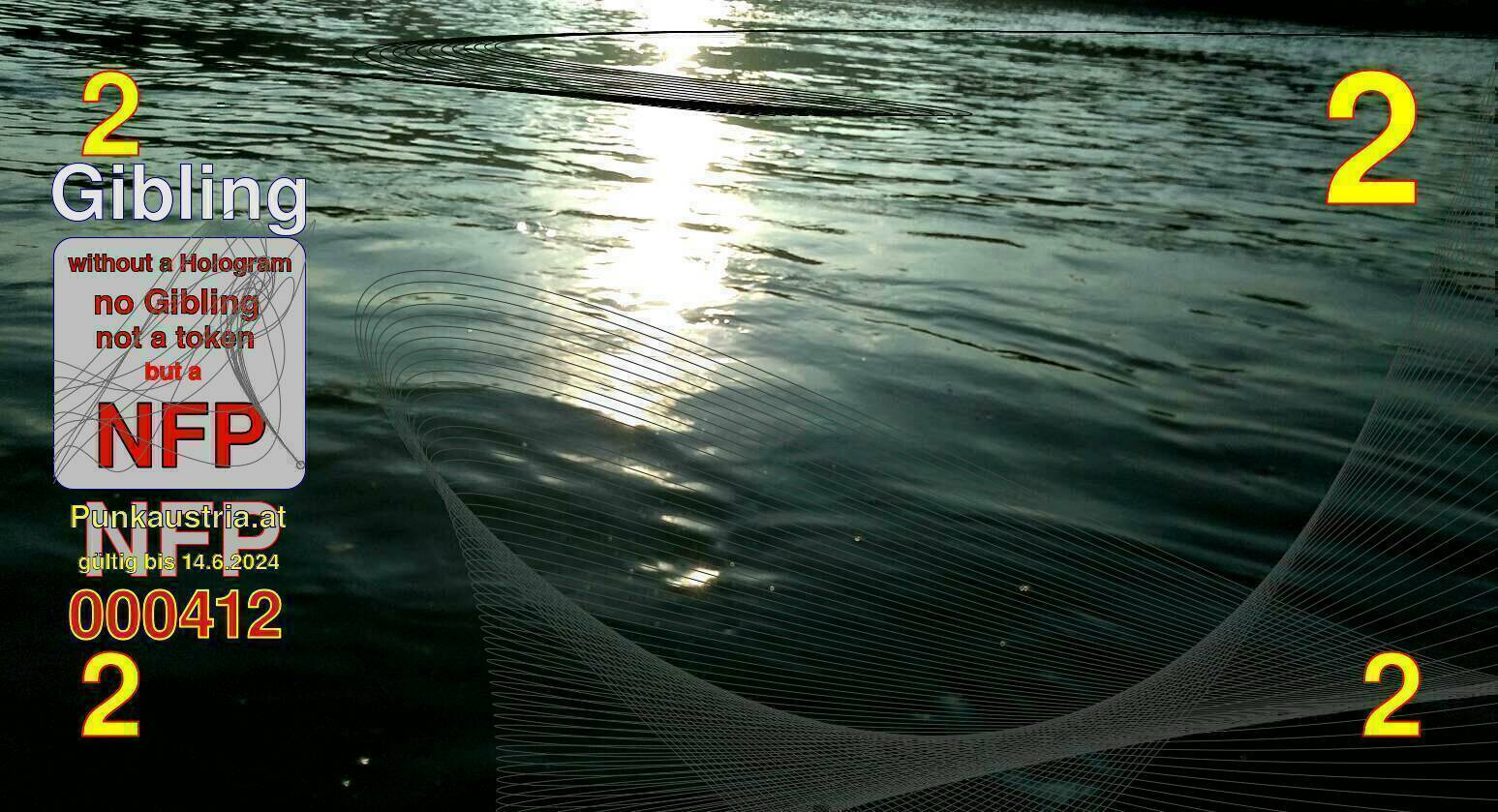 | Caption-Abstract | NFP stays for "Non Fungible Picture". The 11th Edition of our community currency Gibling is built on series of unique pictures. Each image file is unique by serial number and has a own a sha256 checksum. This data is stored in the metatags of the next picture of the series. In the metatags of the first image of the series you can find this text signed in our cryptocurrency Givecoin, created in 2014; NFPs is a fork of the Givecoin blockchain. With the NFPs we extend our ECO system in the context of process art. In this way, the Infolab of the Stadtwerkstatt wants to show another critical position on the logical truths in the new digital information society. The serial number of this image is 000412 and can also be found in the metatag "Original Transmission Reference". The checksum of the previous image is 5bef5095a2450e3da8436cd4f81b0e93c8a29fb9934a4fdf0c627902f40f2c0b and is also stored in the metatag: "Edit Status". Your bitcoinaddress: 16F4FGbn743DQf6L9BynGhdQ3Gbm37NUaD. Your Givecoinaddress:Is printed on the back of the Gibling. To keep the process open, visit https://gibling.stwst.at and follow the instructions." |