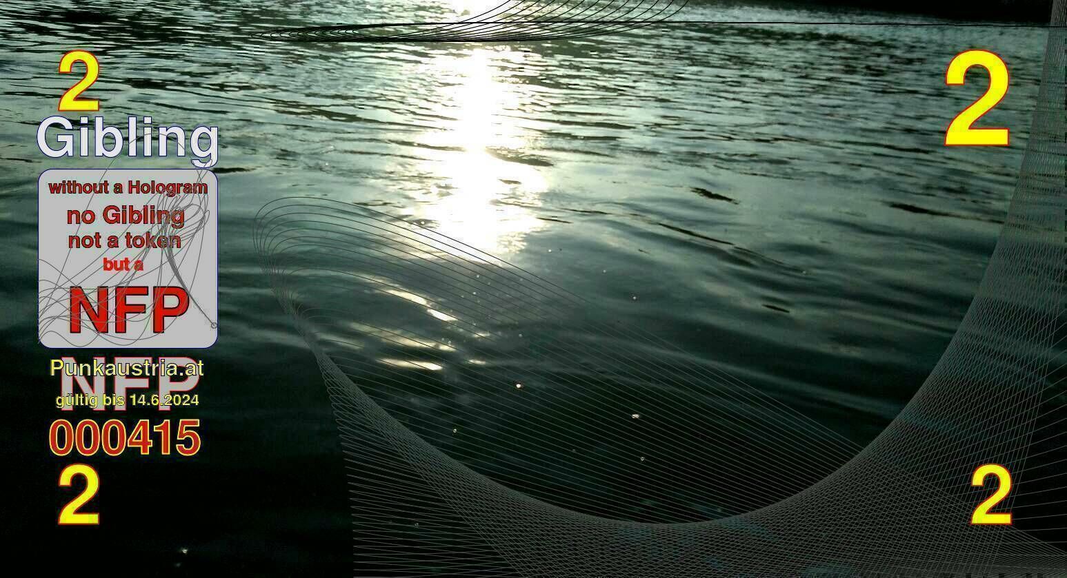 | Caption-Abstract | NFP stays for "Non Fungible Picture". The 11th Edition of our community currency Gibling is built on series of unique pictures. Each image file is unique by serial number and has a own a sha256 checksum. This data is stored in the metatags of the next picture of the series. In the metatags of the first image of the series you can find this text signed in our cryptocurrency Givecoin, created in 2014; NFPs is a fork of the Givecoin blockchain. With the NFPs we extend our ECO system in the context of process art. In this way, the Infolab of the Stadtwerkstatt wants to show another critical position on the logical truths in the new digital information society. The serial number of this image is 000415 and can also be found in the metatag "Original Transmission Reference". The checksum of the previous image is f7e427d269627dc43a46a6a6b571ce7fc234d38d08bdae83b6a83b2e68f1a321 and is also stored in the metatag: "Edit Status". Your bitcoinaddress: 16HDfbamu3pBo24zjkGtDhin6ijMtnsnPM. Your Givecoinaddress:Is printed on the back of the Gibling. To keep the process open, visit https://gibling.stwst.at and follow the instructions." |