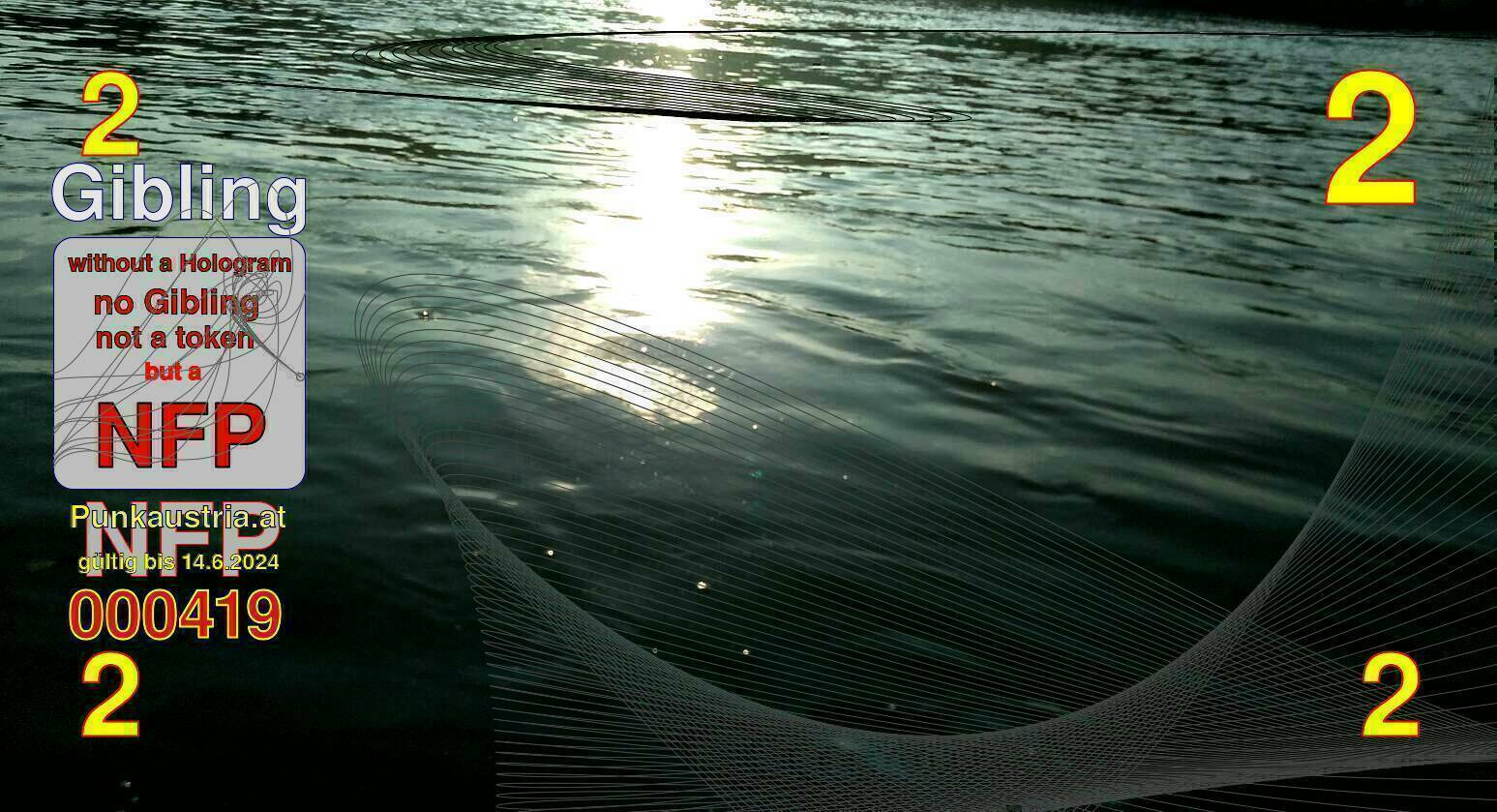 | Caption-Abstract | NFP stays for "Non Fungible Picture". The 11th Edition of our community currency Gibling is built on series of unique pictures. Each image file is unique by serial number and has a own a sha256 checksum. This data is stored in the metatags of the next picture of the series. In the metatags of the first image of the series you can find this text signed in our cryptocurrency Givecoin, created in 2014; NFPs is a fork of the Givecoin blockchain. With the NFPs we extend our ECO system in the context of process art. In this way, the Infolab of the Stadtwerkstatt wants to show another critical position on the logical truths in the new digital information society. The serial number of this image is 000419 and can also be found in the metatag "Original Transmission Reference". The checksum of the previous image is 6aa279177d9e6f282b136d138ef177d8008d5a8e733d1a39286506974051be41 and is also stored in the metatag: "Edit Status". Your bitcoinaddress: 16KnFeMQNj2uEJLEM5vnbre16NXqV9878f. Your Givecoinaddress:Is printed on the back of the Gibling. To keep the process open, visit https://gibling.stwst.at and follow the instructions." |