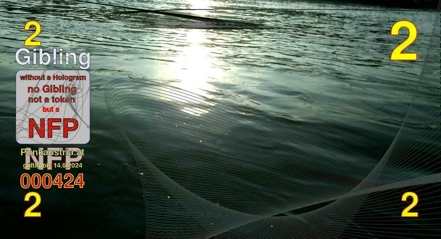 | Caption-Abstract | NFP stays for "Non Fungible Picture". The 11th Edition of our community currency Gibling is built on series of unique pictures. Each image file is unique by serial number and has a own a sha256 checksum. This data is stored in the metatags of the next picture of the series. In the metatags of the first image of the series you can find this text signed in our cryptocurrency Givecoin, created in 2014; NFPs is a fork of the Givecoin blockchain. With the NFPs we extend our ECO system in the context of process art. In this way, the Infolab of the Stadtwerkstatt wants to show another critical position on the logical truths in the new digital information society. The serial number of this image is 000424 and can also be found in the metatag "Original Transmission Reference". The checksum of the previous image is f30dbdf227e2daae6acb8f0c148da7c6e49621434b0a2911a5535f3c3444e3f7 and is also stored in the metatag: "Edit Status". Your bitcoinaddress: 16NYWLh9Y9okEb9EeTD53gZeRJPT8cz5BY. Your Givecoinaddress:Is printed on the back of the Gibling. To keep the process open, visit https://gibling.stwst.at and follow the instructions." |