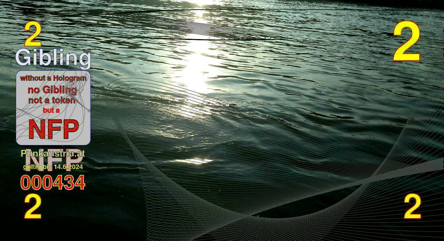 | Caption-Abstract | NFP stays for "Non Fungible Picture". The 11th Edition of our community currency Gibling is built on series of unique pictures. Each image file is unique by serial number and has a own a sha256 checksum. This data is stored in the metatags of the next picture of the series. In the metatags of the first image of the series you can find this text signed in our cryptocurrency Givecoin, created in 2014; NFPs is a fork of the Givecoin blockchain. With the NFPs we extend our ECO system in the context of process art. In this way, the Infolab of the Stadtwerkstatt wants to show another critical position on the logical truths in the new digital information society. The serial number of this image is 000434 and can also be found in the metatag "Original Transmission Reference". The checksum of the previous image is cdc530d9f111a6975adb74759986cc81ca2d68aee62a1c6f9f1df0d3439bf1ab and is also stored in the metatag: "Edit Status". Your bitcoinaddress: 16W67BCg7sMbMitVDLbH5foXnvUgyQJzko. Your Givecoinaddress:Is printed on the back of the Gibling. To keep the process open, visit https://gibling.stwst.at and follow the instructions." |