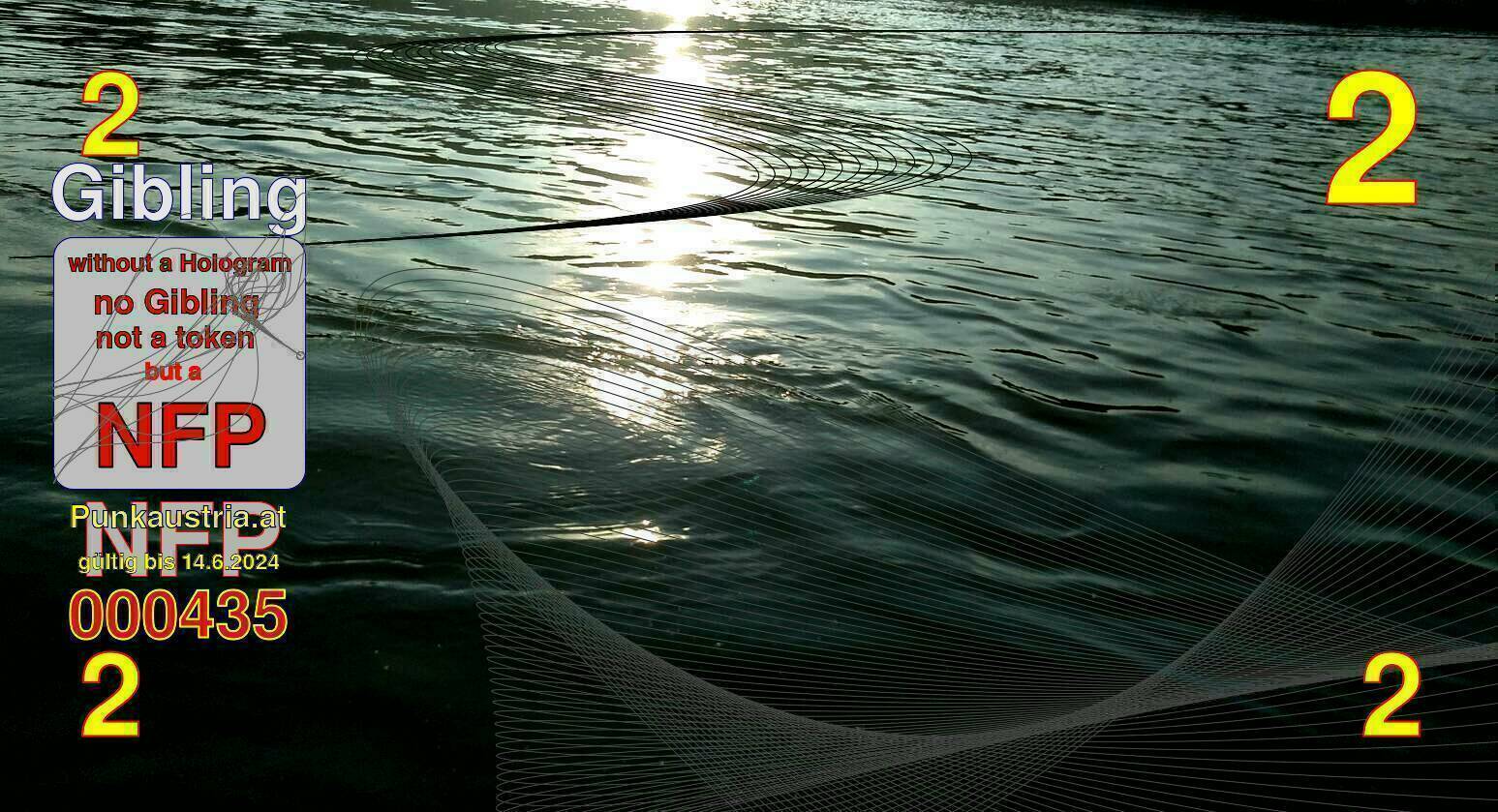 | Caption-Abstract | NFP stays for "Non Fungible Picture". The 11th Edition of our community currency Gibling is built on series of unique pictures. Each image file is unique by serial number and has a own a sha256 checksum. This data is stored in the metatags of the next picture of the series. In the metatags of the first image of the series you can find this text signed in our cryptocurrency Givecoin, created in 2014; NFPs is a fork of the Givecoin blockchain. With the NFPs we extend our ECO system in the context of process art. In this way, the Infolab of the Stadtwerkstatt wants to show another critical position on the logical truths in the new digital information society. The serial number of this image is 000435 and can also be found in the metatag "Original Transmission Reference". The checksum of the previous image is bbcc630b4234c95c073fda49e3b99680d20d24760198803b581cfb4b4b3d41ab and is also stored in the metatag: "Edit Status". Your bitcoinaddress: 16W9BDfahVe6WjGebQjXXWbASiyRLWe23B. Your Givecoinaddress:Is printed on the back of the Gibling. To keep the process open, visit https://gibling.stwst.at and follow the instructions." |
